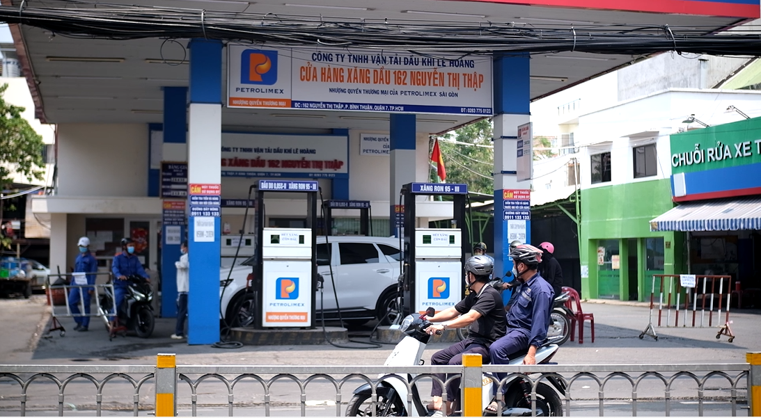 Tuy nhiên, cũng có xuất hiện điểm bán hàng treo biển hết xăng. Cụ thể, khoảng 13h, tại cửa hàng xăng dầu 162 Nguyễn Thị Thập (phường Bình Thuận, quận 7) treo biển hết xăng.