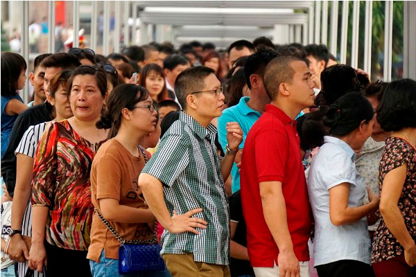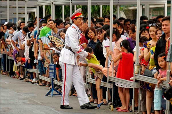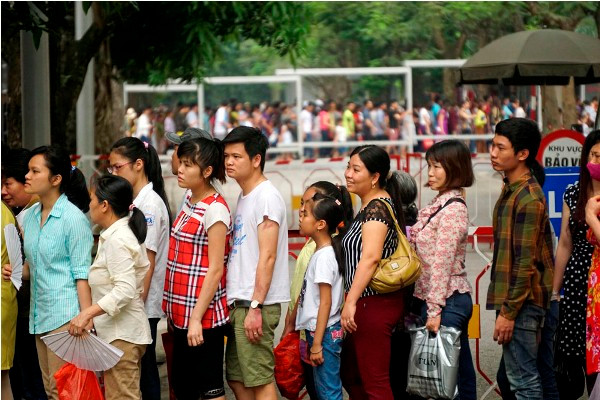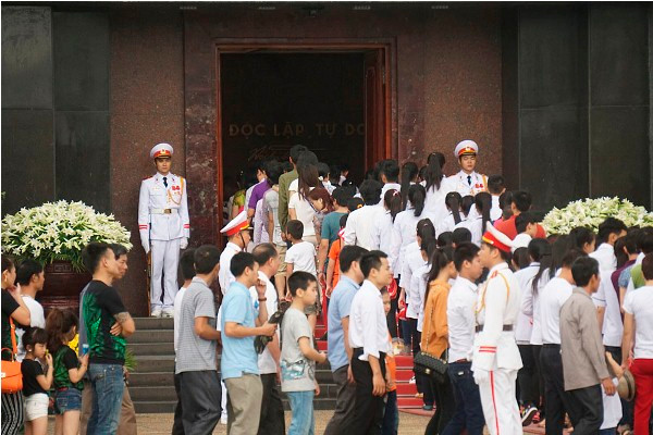 Hàng người nối dài phía trước cửa lăng Bác.