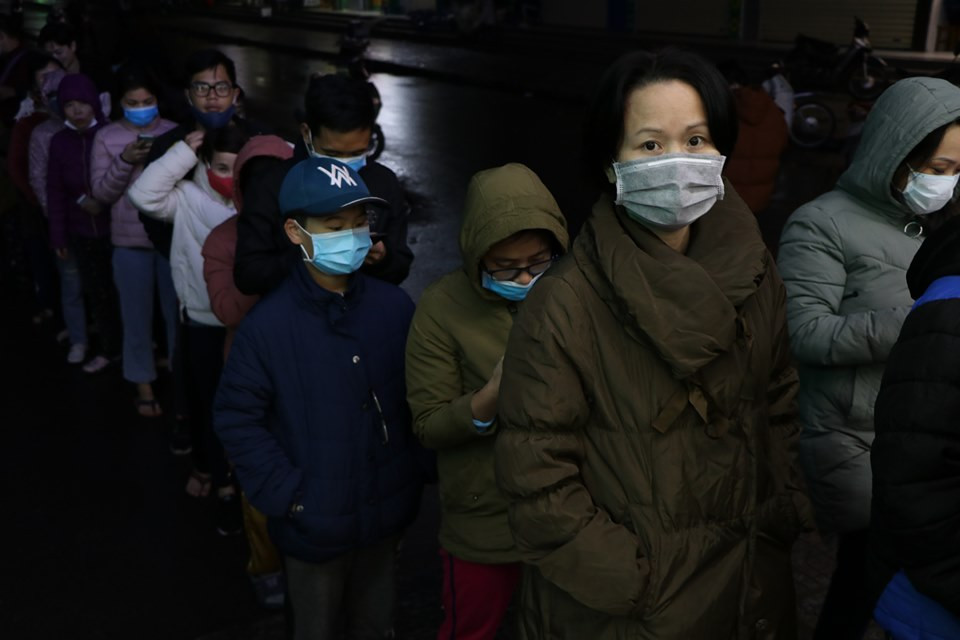 Người dân xếp hàng giữa đêm mưa rét mua khẩu trang đúng giá