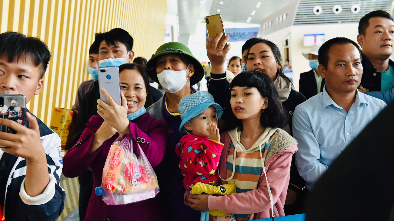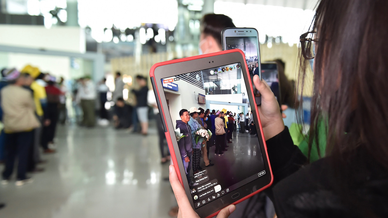 Nhiều người livestream tại sân bay khi chuẩn bị đón tân Hoa hậu Đỗ Thị Hà.