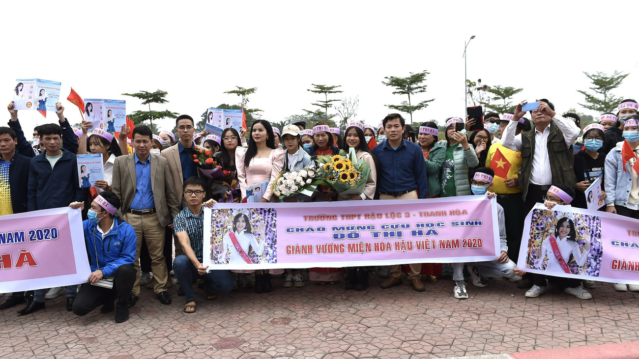 Trưa 1/12, Đỗ Thị Hà trở về Thanh Hóa thăm quê nhà sau khoảng 10 ngày đăng quang Hoa hậu Việt Nam 2020. Hàng trăm người có mặt từ sớm ở sân bay Thọ Xuân để chào đón cô.