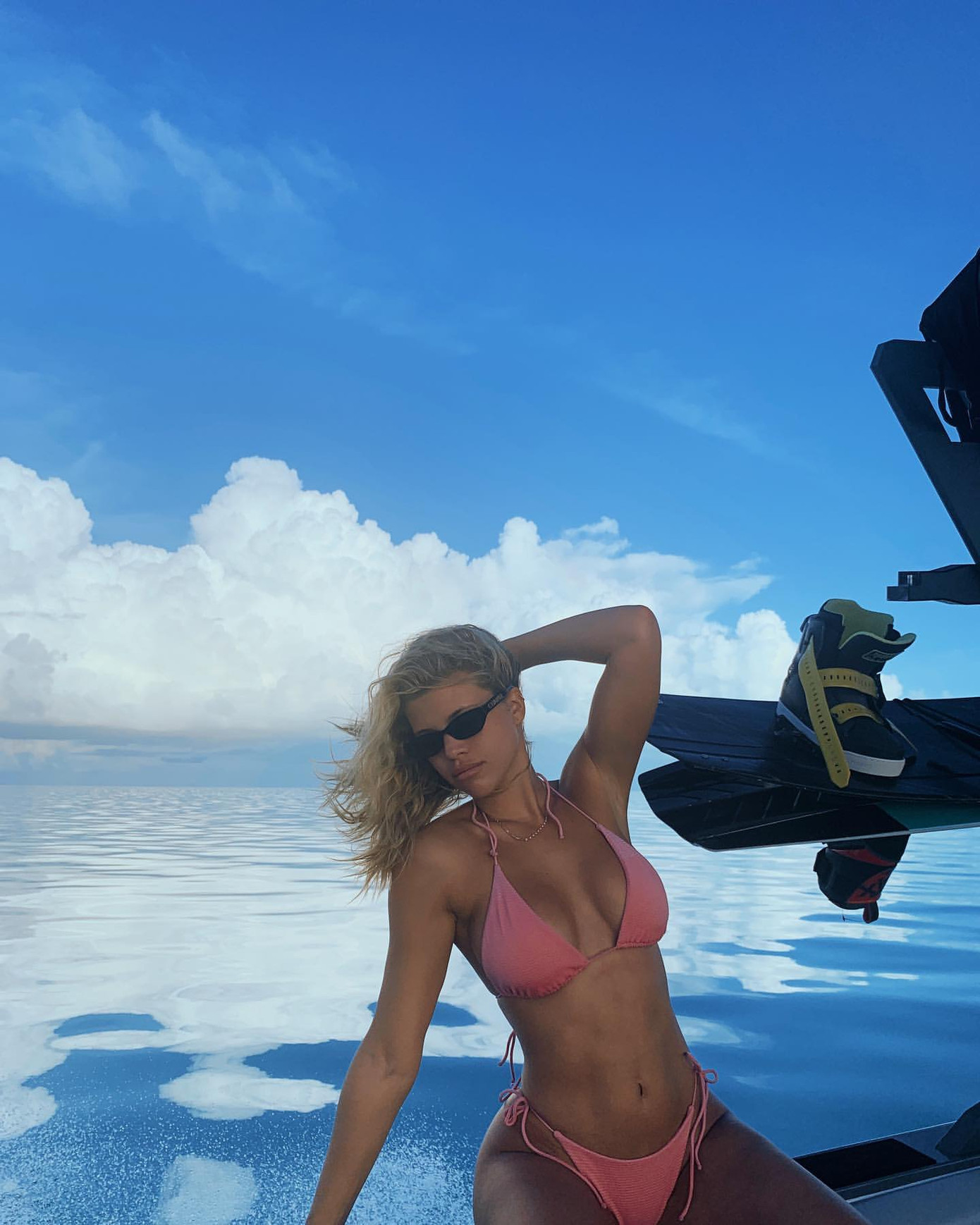 Người đẹp 21 tuổi vừa tung loạt ảnh diện bikini hồng thả dáng "đồng hồ cát" trên du thuyền giữa biển trời xanh ngắt.