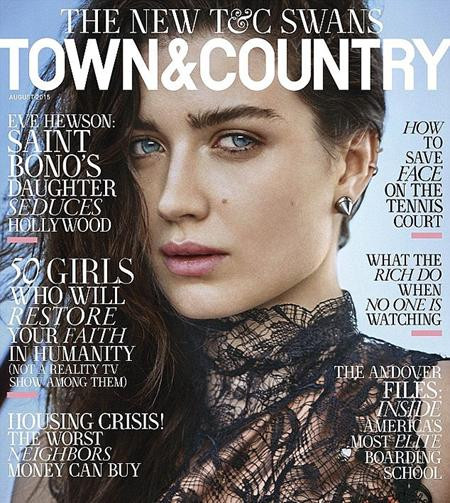 Trước khi làm người mẫu cho tạp chí đàn ông GQ, Eve Hewson cũng từng xuất hiện trên trang bìa của tạp chí Town & Country và nhận được rất nhiều đánh giá tích cực.