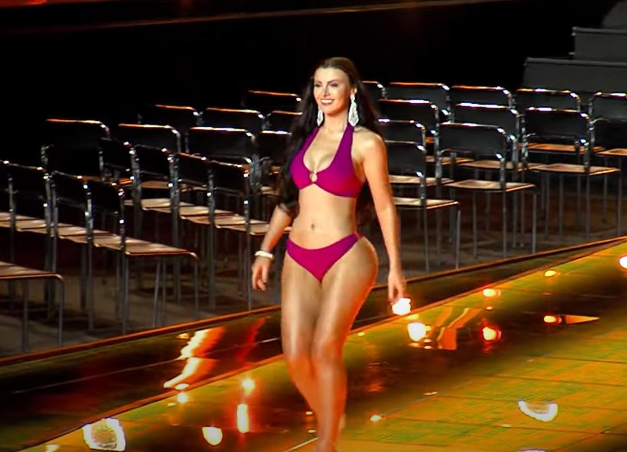| Kate Marie trình diễn bikini trong đêm bán kết Hoa hậu Siêu quốc gia 2022. |
