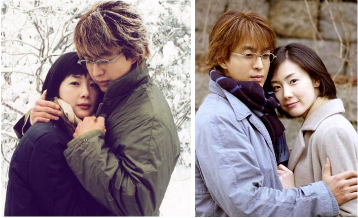 Choi Ji Woo và Bae Yong Joon trong phim "Bản tình ca mùa đông"