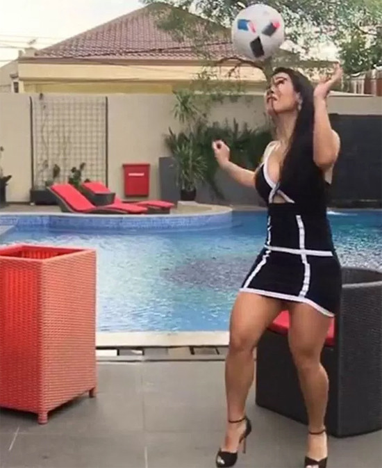 Hôm 7/7 vừa qua, người đẹp tâng bóng này đã đăng tải một clip ghi lại màn tâng bóng điệu nghệ của cô trong bộ trang phục nóng bỏng: váy ngắn và giày cao gót.