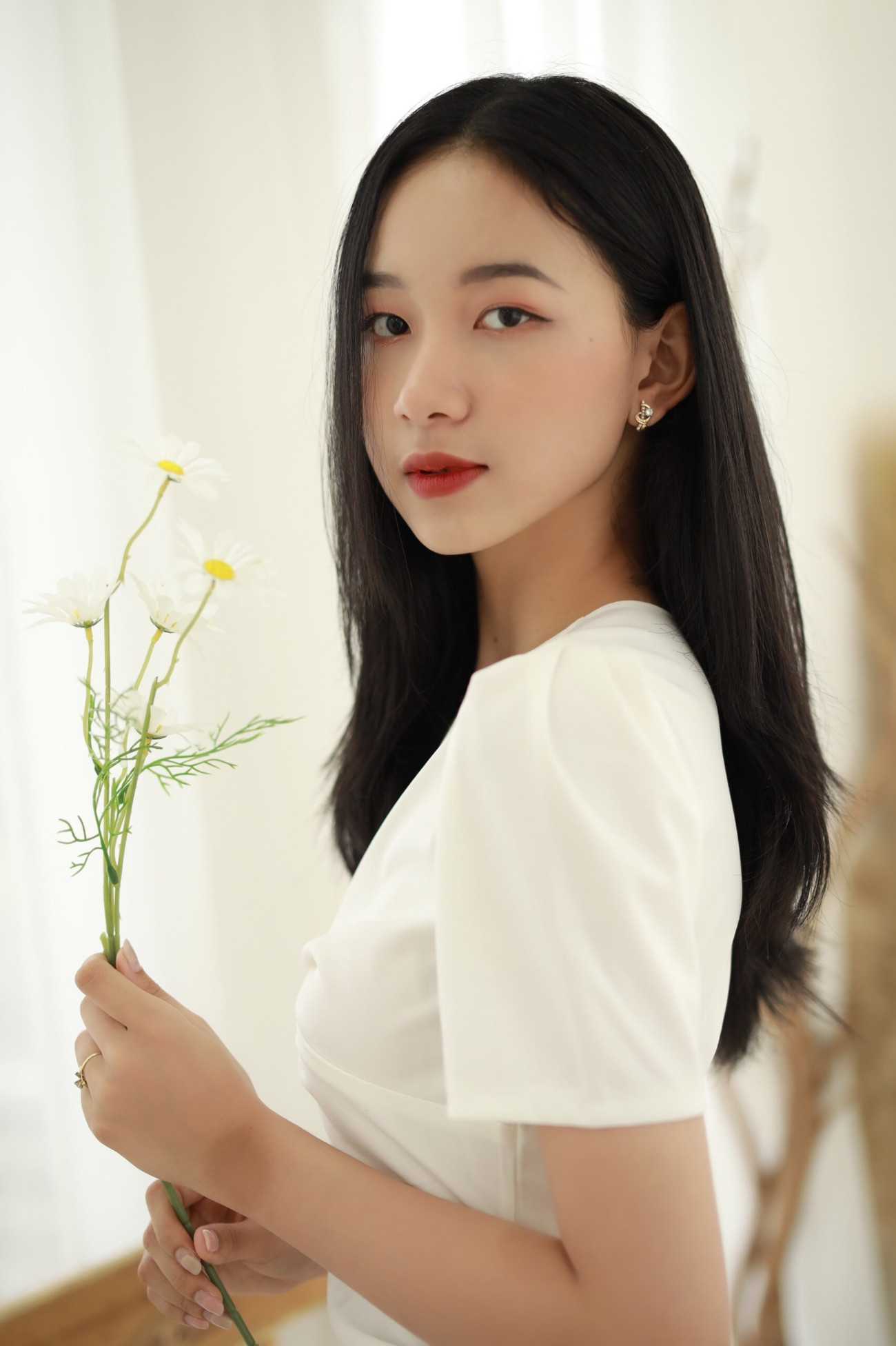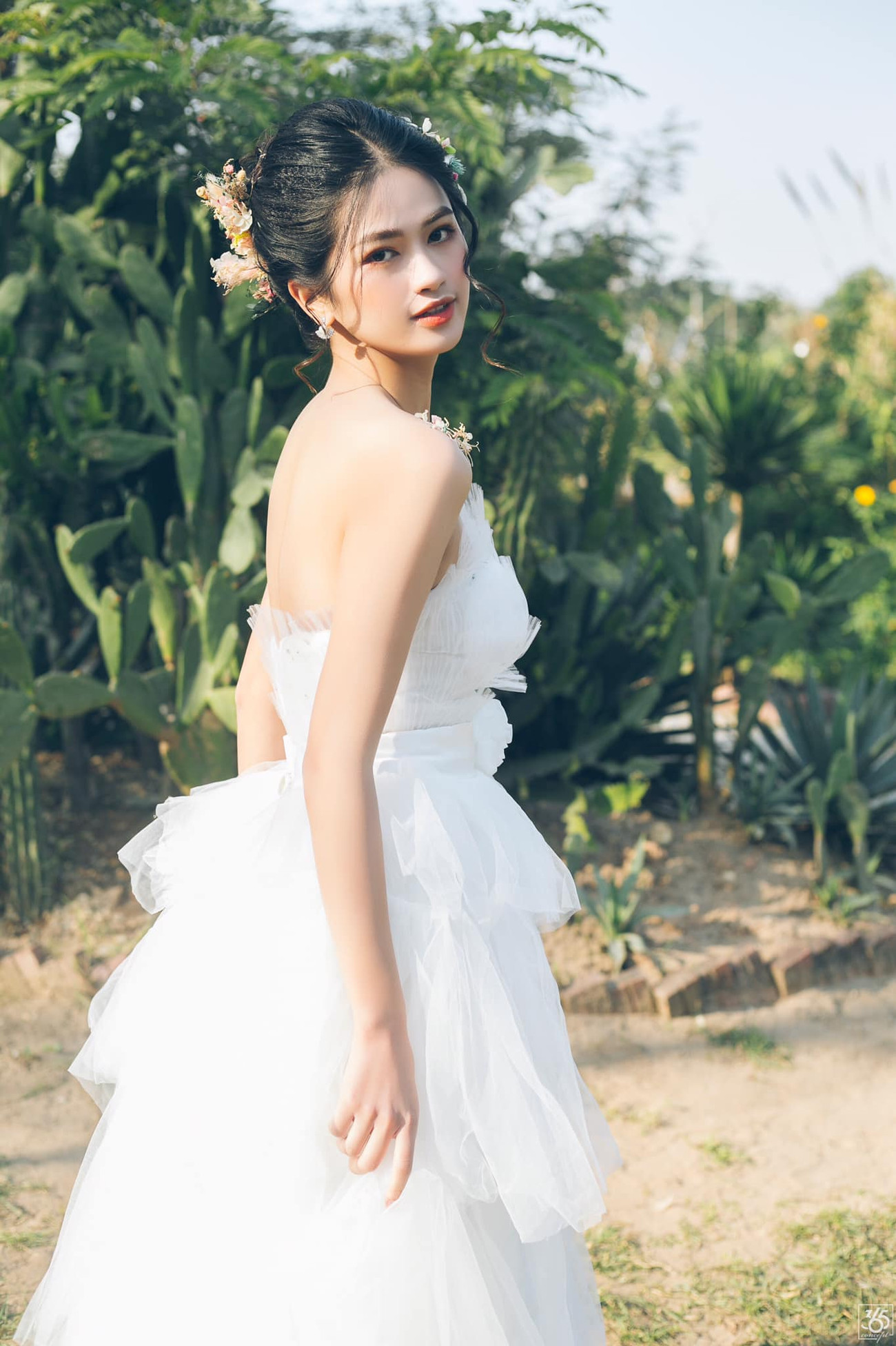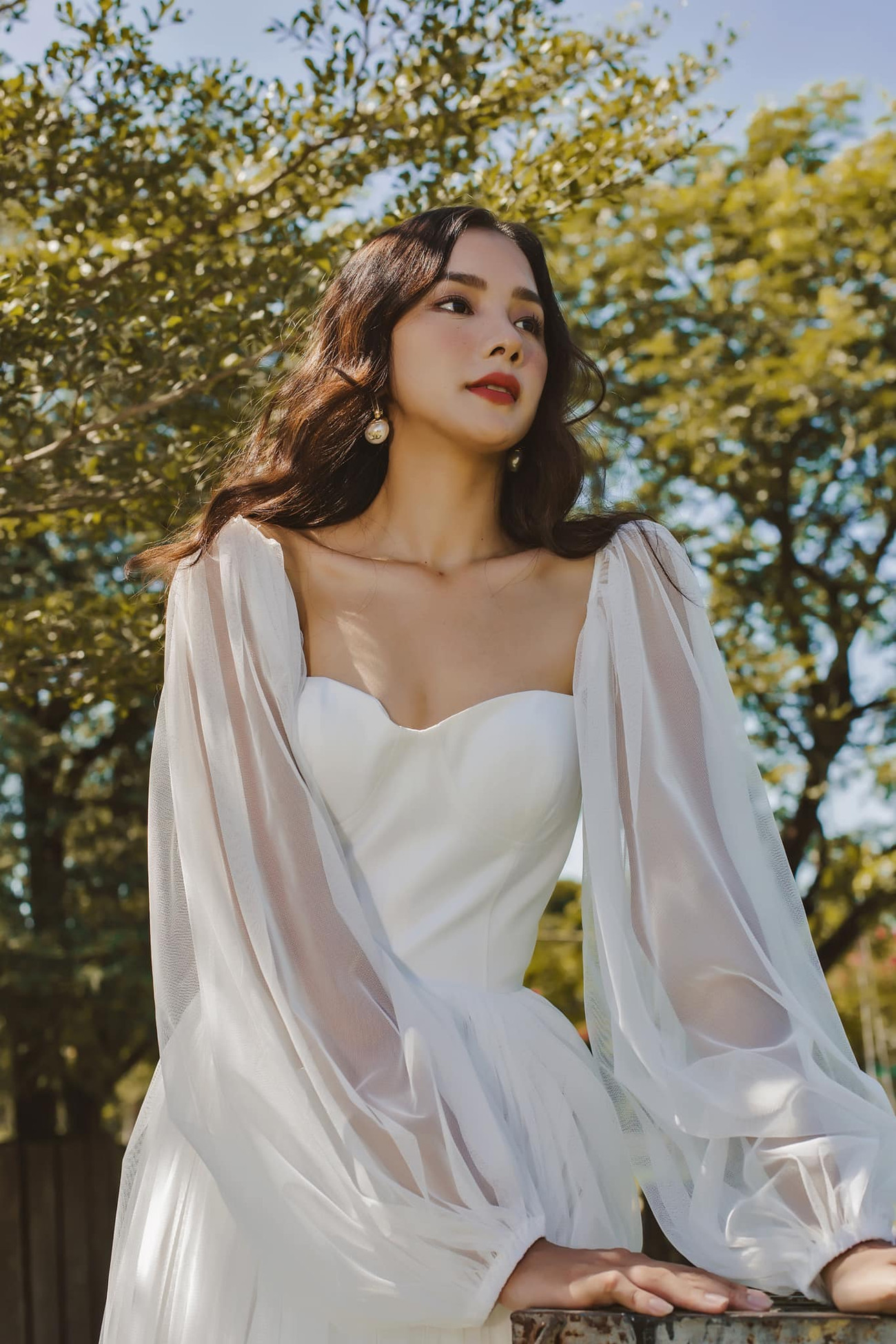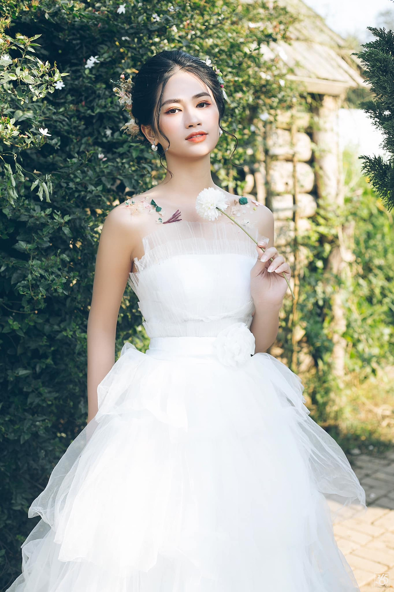 Nguyễn Thị Thu Phương đẹp rạng ngời trong bộ đầm trắng tinh khôi.