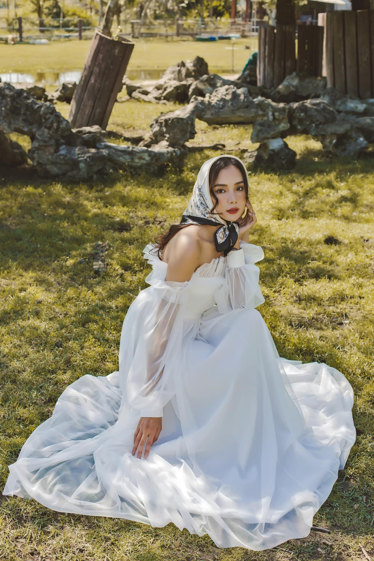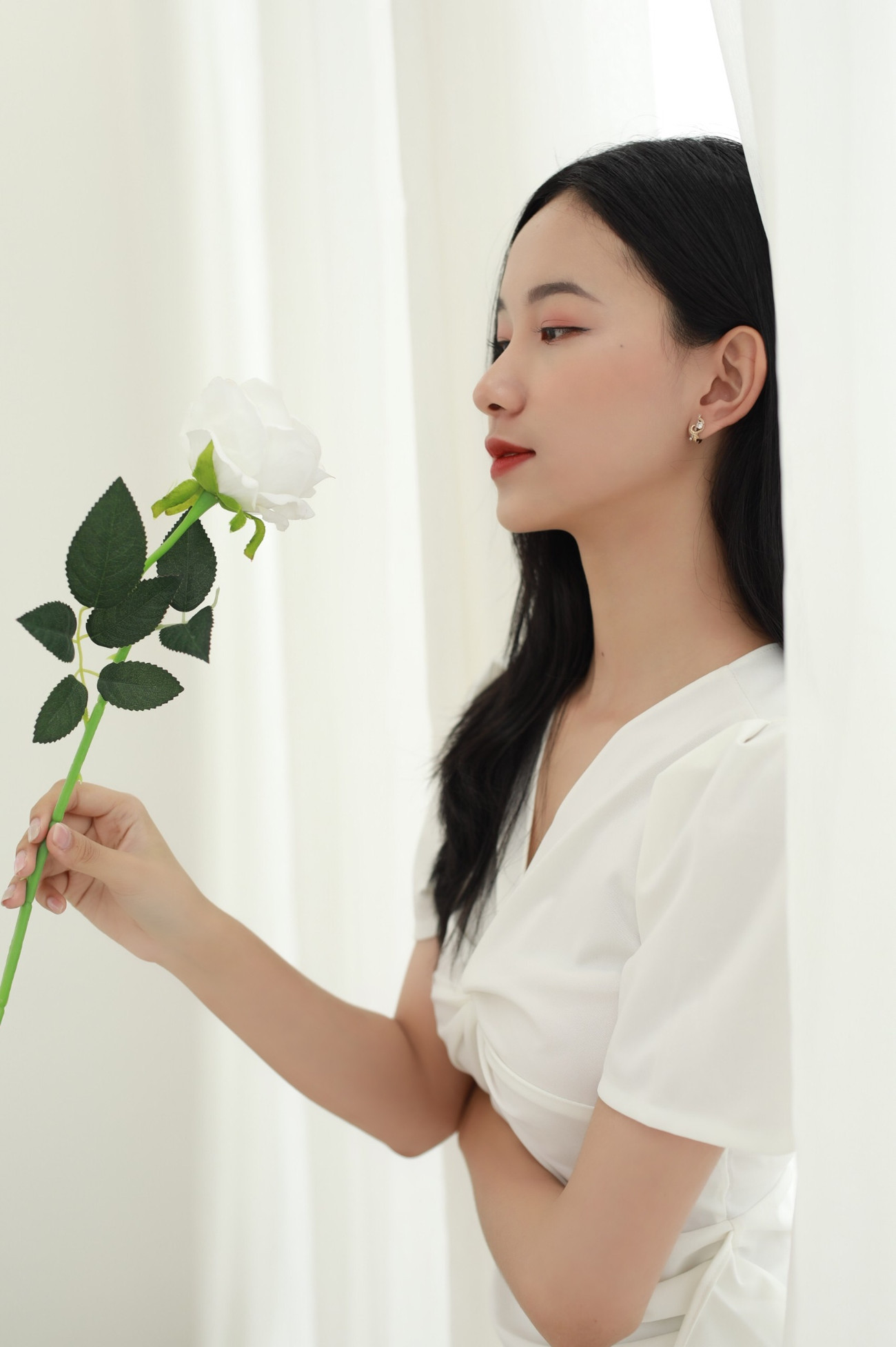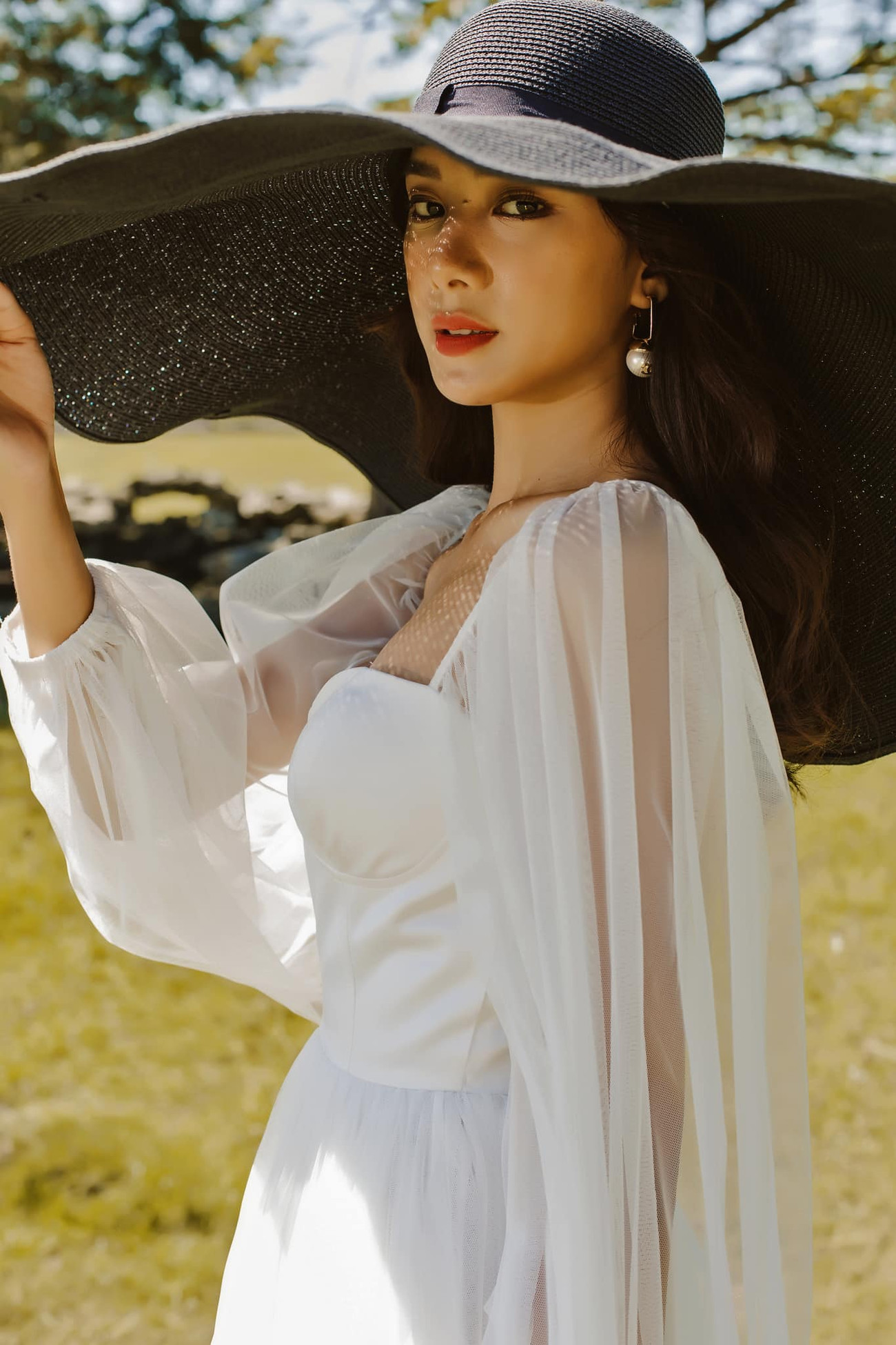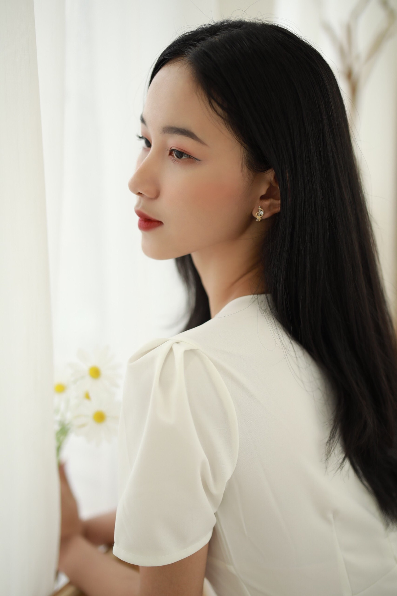 Nguyễn Thị Thu Phương đẹp rạng ngời trong bộ đầm trắng tinh khôi.
