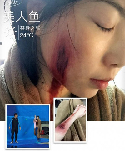 Trong quá trình đóng thế, cô gái chịu một số thương tích.