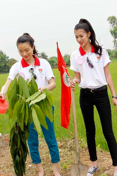 TPO - Thu gom rác thải, dọn dẹp đường phố tại phường Phong Cốc, trồng cây xanh tại trường Mậm non Phong Cốc (Thị xã Quảng Yên, Quảng Ninh) v.v.., các thí sinh dự thi vòng Chung kết Người đẹp Hạ Long đã góp sức tham gia bảo vệ môi trường.