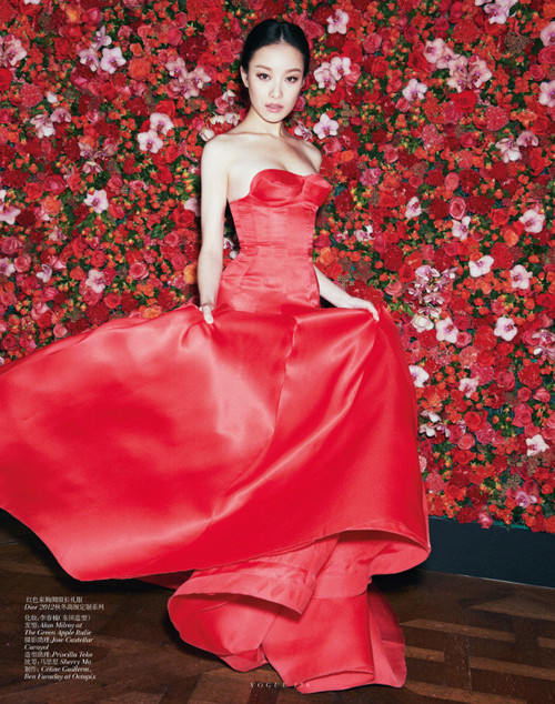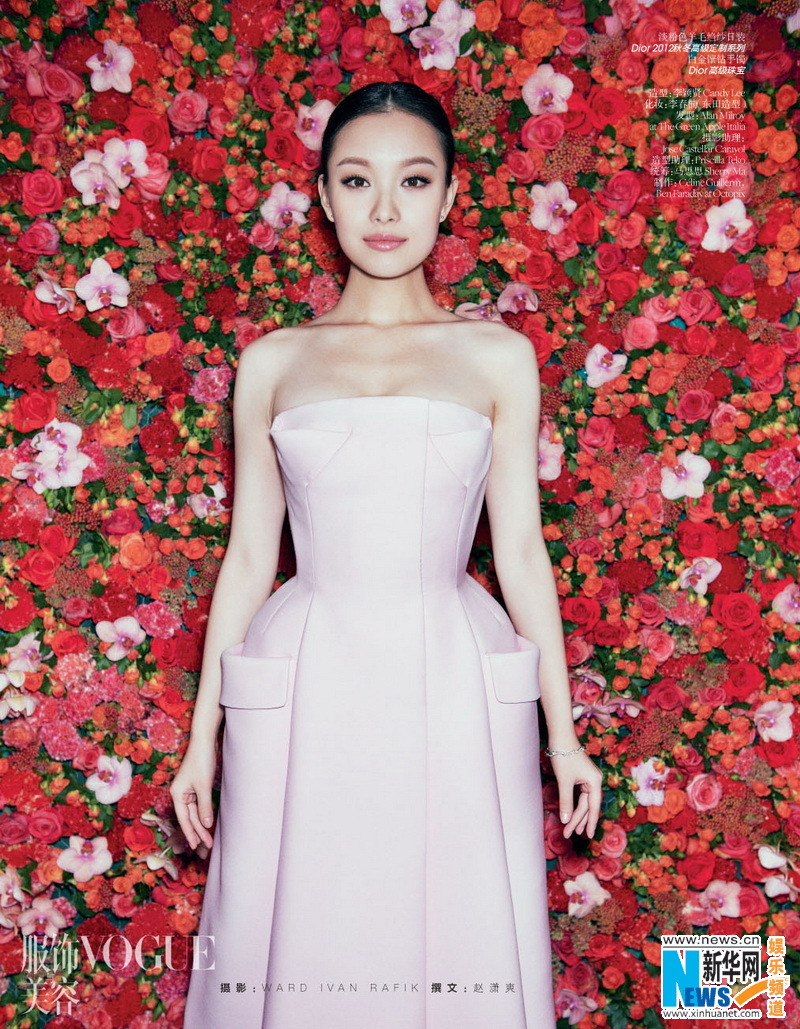 Xuất hiện trên tạp chí Vogue (Trungb Quốc) số tháng chín, với hình ảnh rực rỡ tươi mới ngập tràn trong sắc hoa yêu kiều, ánh mắt nhìn như "hút hồn" người xem: