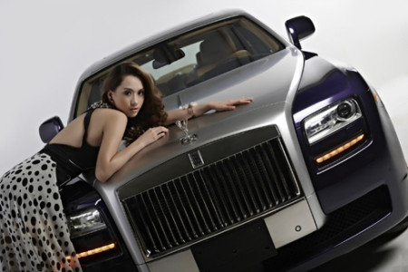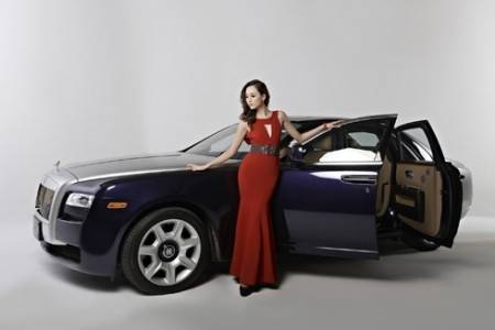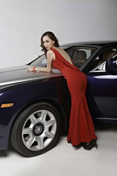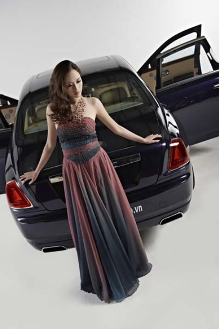 TPO - Cô người đẹp từng lọt vào top 10 hoa hậu Việt Nam 2008 tạo dáng sang trọng gợi cảm bên chiếc xe sang Rolls-Royce Ghost trị giá 225.000 USD tại Mỹ.