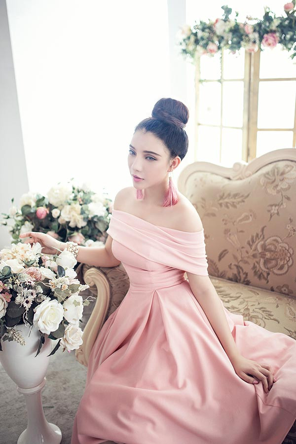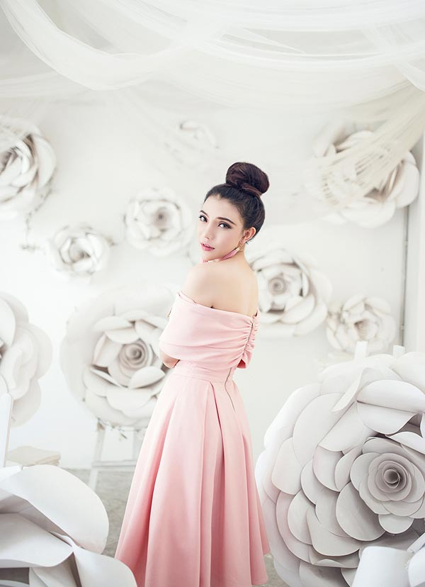 TPO - Đại diện Việt Nam tại cuộc thi Hoa hậu châu Á Thái Bình Dương 2014 diện bộ váy màu hồng cúp ngực, khoe vòng một trễ nải đầy nóng bỏng.
