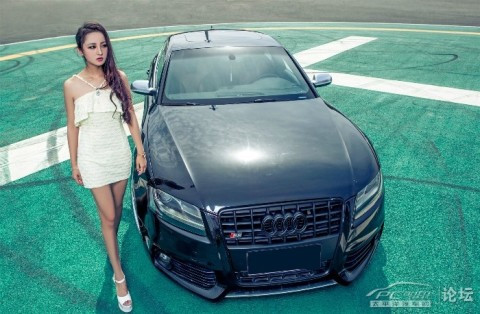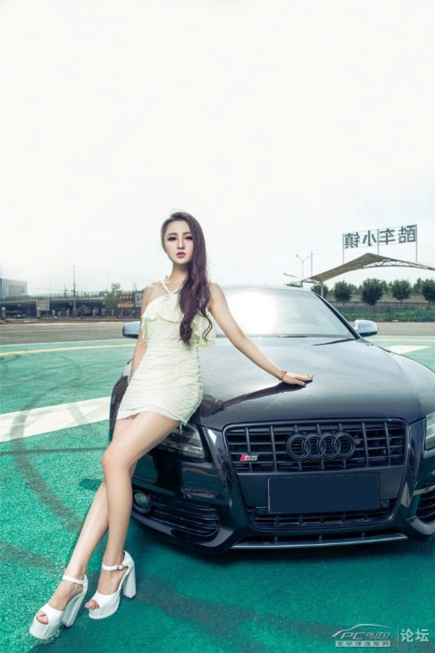 Mỹ nhân uốn mình khoe đường cong bên Audi màu độc