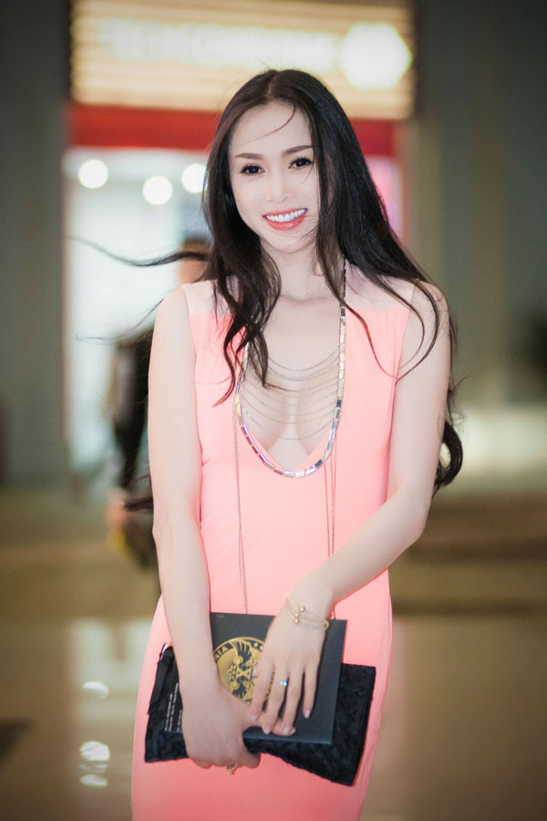 TPO - Người đẹp áo dài và cũng là thí sinh lọt vào top 5 của cuộc thi Hoa hậu Việt Nam 2012 Vũ Ngọc Anh diện chiếc váy màu hồng cắt xẻ vô cùng táo bạo khi tới tham dự một sự kiện tại Hà Nội tối 8/5.