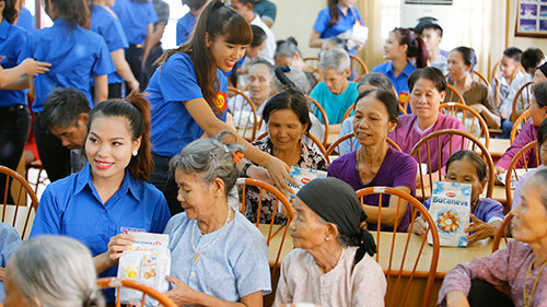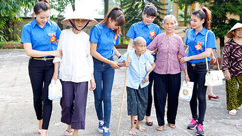 Các người đẹp đến động viên và giao lưu với các cụ già không nơi nương tựa tại trung tâm