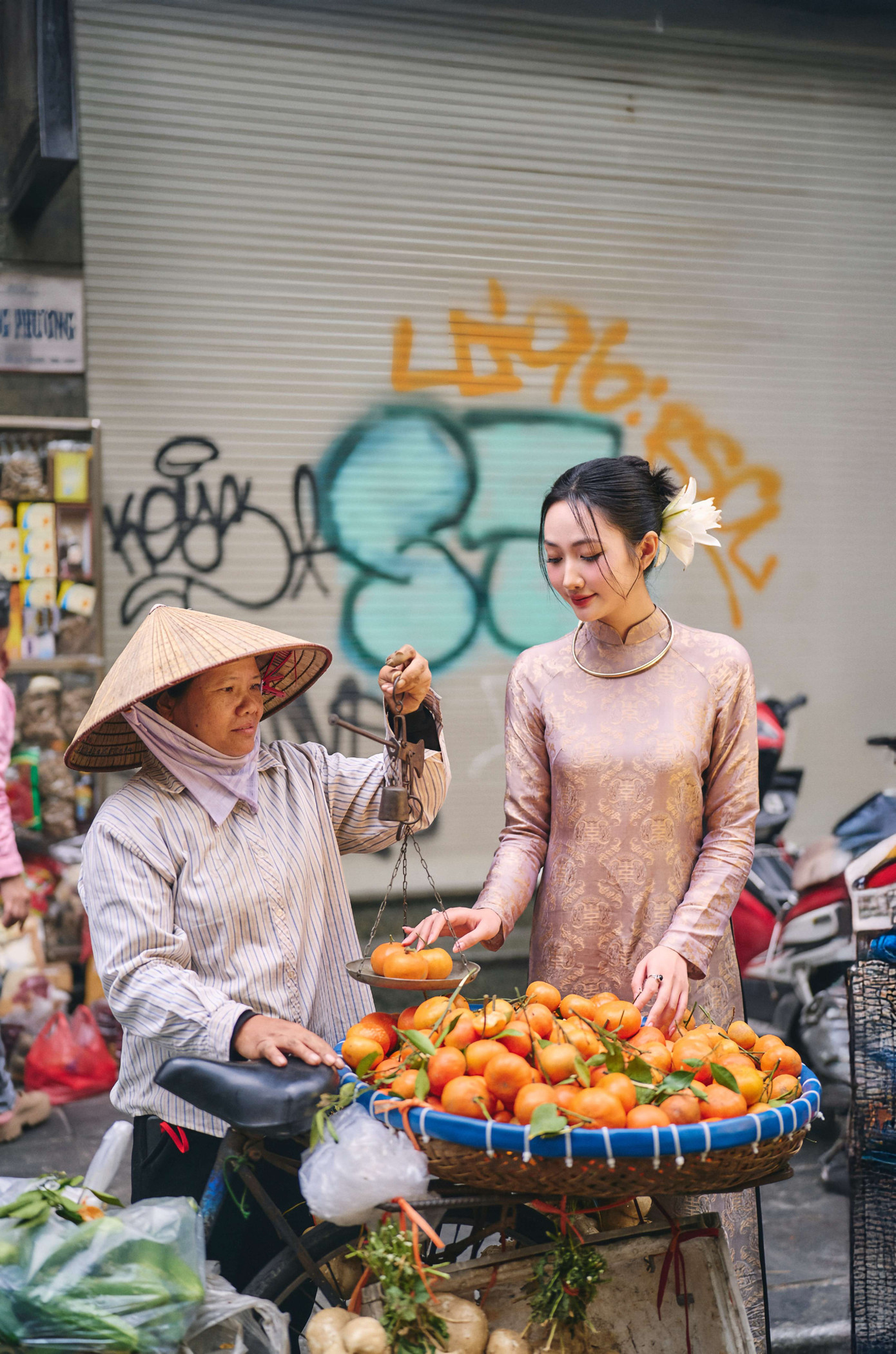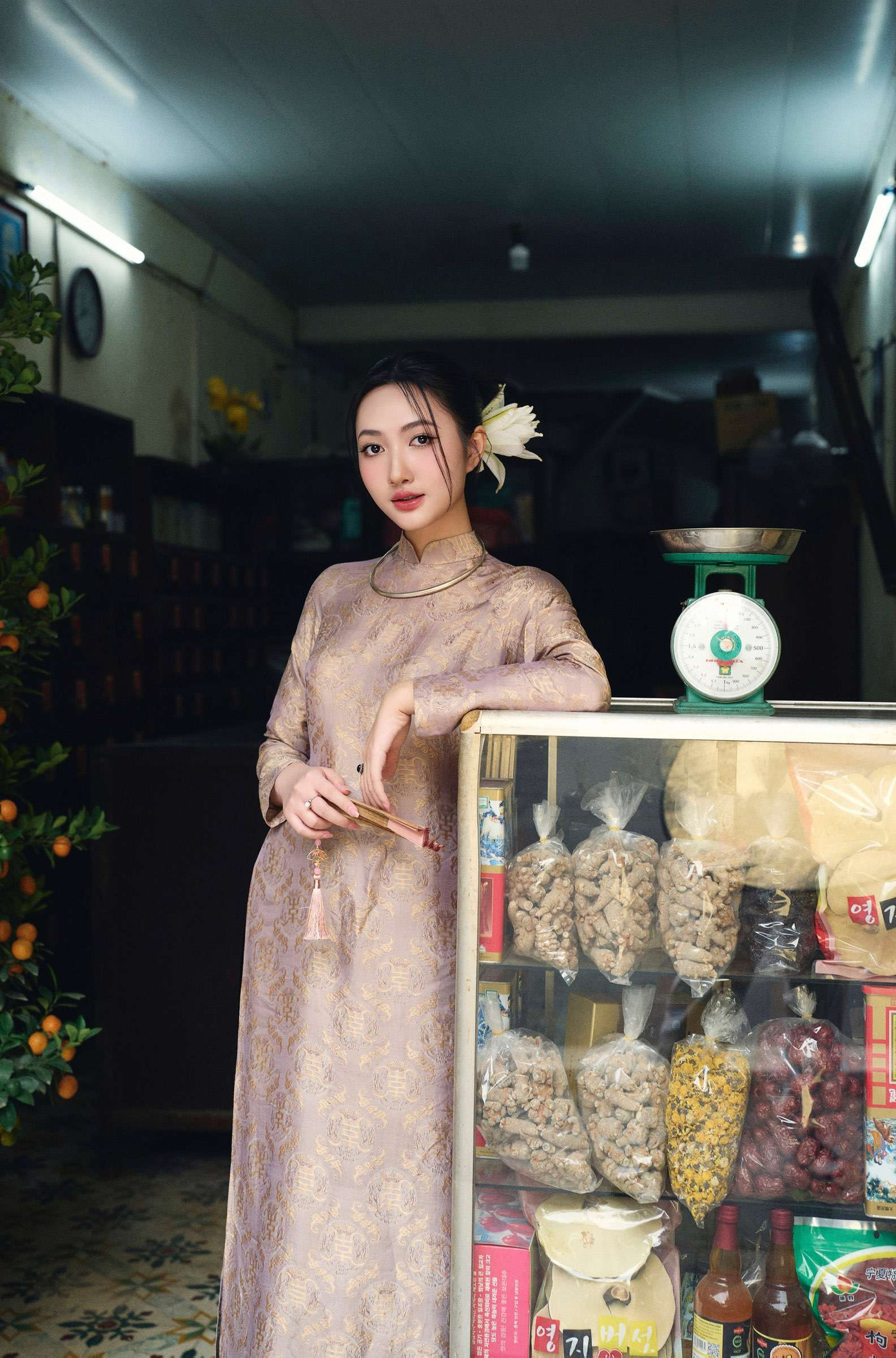 “Đi chợ hoa hay dạo quanh phố cổ với ông bà, cha mẹ, gia đình vẫn là điều gì đó mình rất thích và làm mỗi năm. Dù công nghệ phát triển, mọi người đặt hàng trực tuyến rất tiện lợi, nhưng mình vẫn lựa chọn đi chợ truyền thống mỗi dịp xuân về…” Đã là một thiếu nữ với nhiều trải nghiệm khác nhau, Thuỷ Tiên vẫn luôn nhớ về những nét xưa cũ của Hà Nội, và mong muốn khắc hoạ một thiếu nữ Hà Thành thời xưa đằm thắm, nhẹ nhàng nhưng đầy tinh tế.