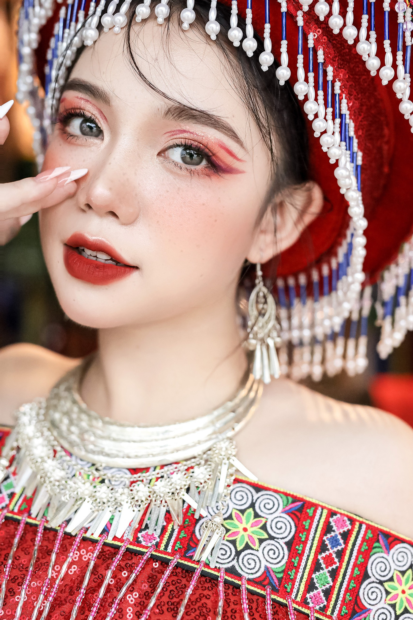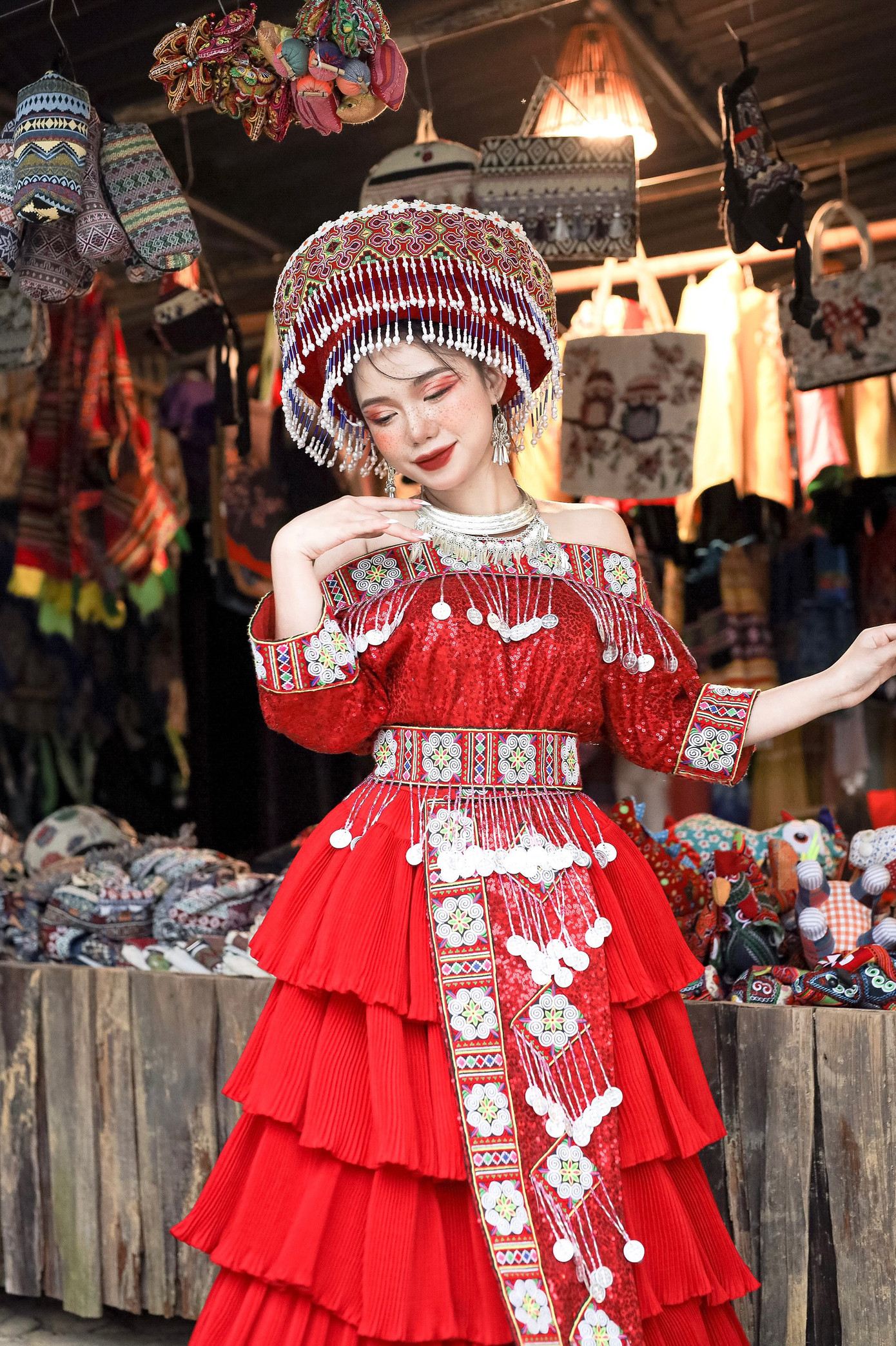 | Hà Phương trong trang phục người H’Mông được biến tấu, cách điệu theo hướng hiện đại. |