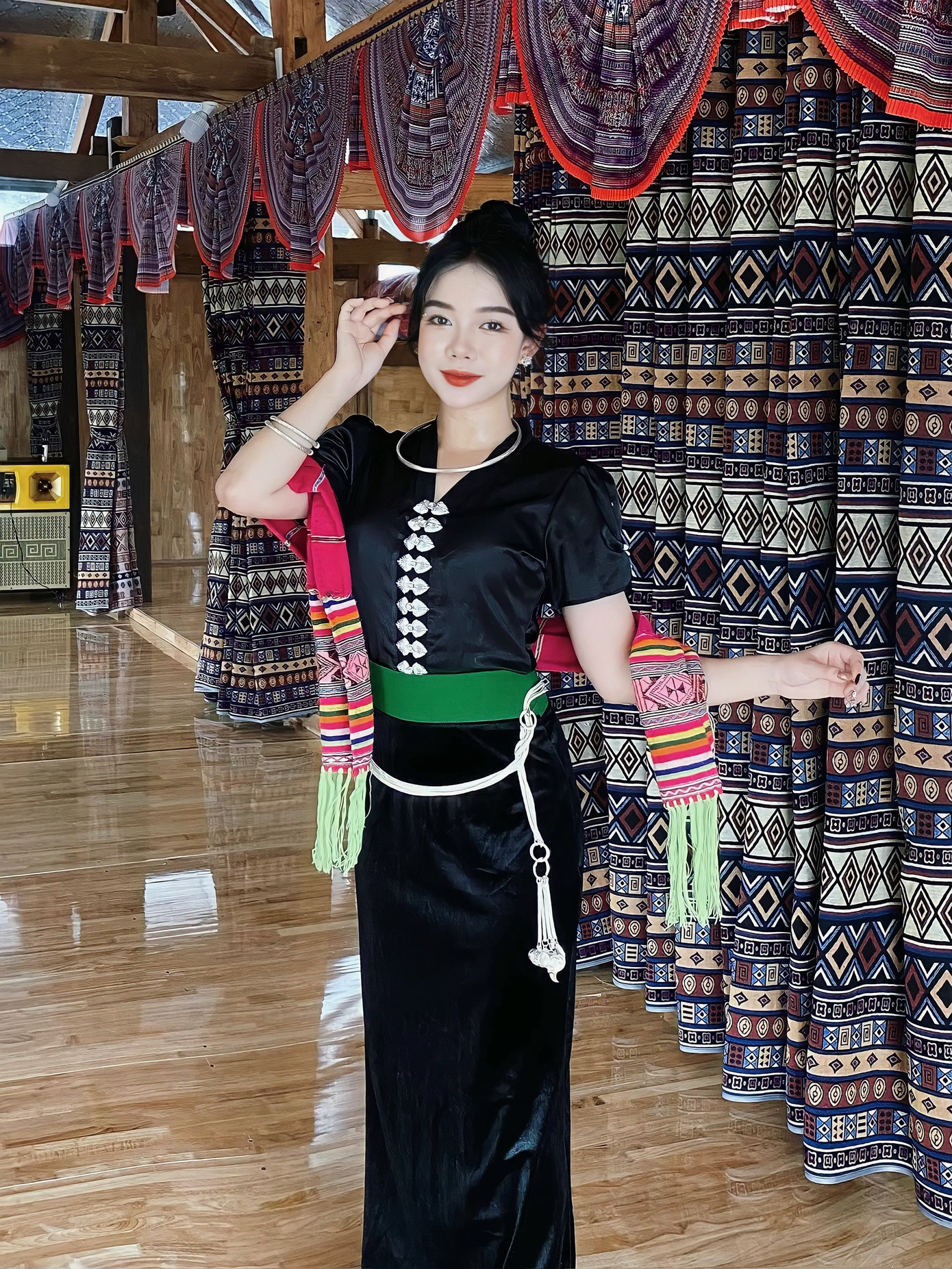 | Hà Phương trong trang phục của người Thái. |