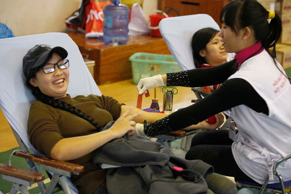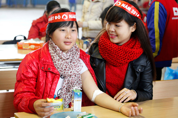Nhiệt tình hiến máu trong chương trình Chủ Nhật Đỏ 2014.