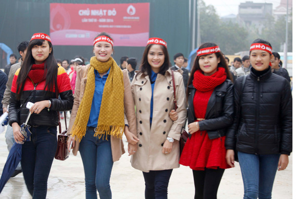 Hai sinh viên Việt Tùng- Linh Trang cổ vũ Chủ Nhật Đỏ