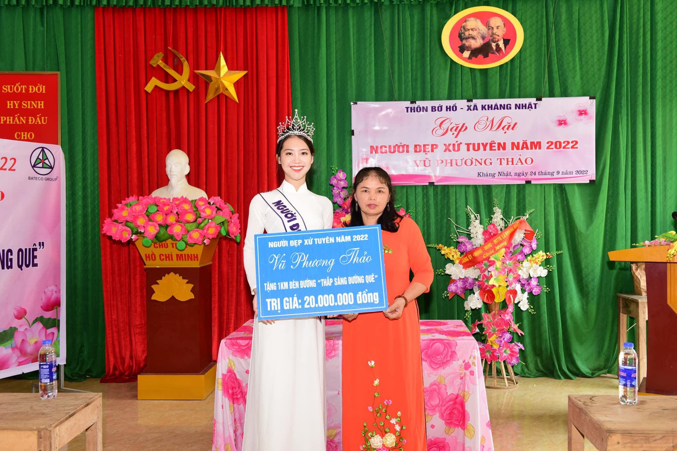 | Phương Thảo tham gia nhiều hoạt động xã hội như quyên góp, trao học bổng cho học sinh nghèo... sau khi đăng quang Người đẹp xứ Tuyên 2022. |