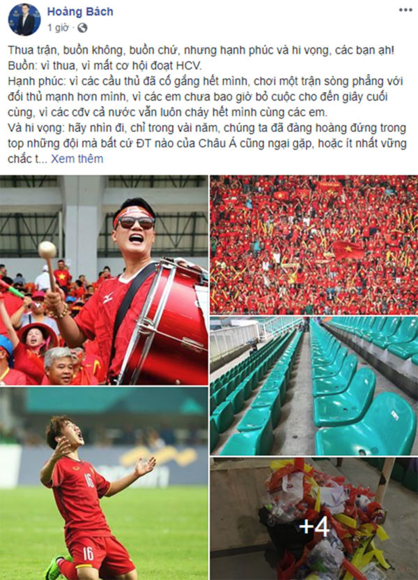 Nhiều người nổi tiếng bày tỏ sự buồn bã trên trang cá nhân. Tuy nhiên, họ cũng rất tự hào với những gì mà Olympic Việt Nam đã làm được tại Indonesia.