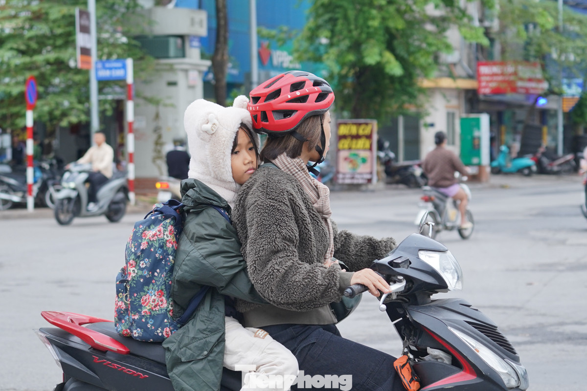 Trời lạnh cùng với dòng xe cộ ken đặc trong giờ cao điểm sáng khiến người dân di chuyển khó khăn.