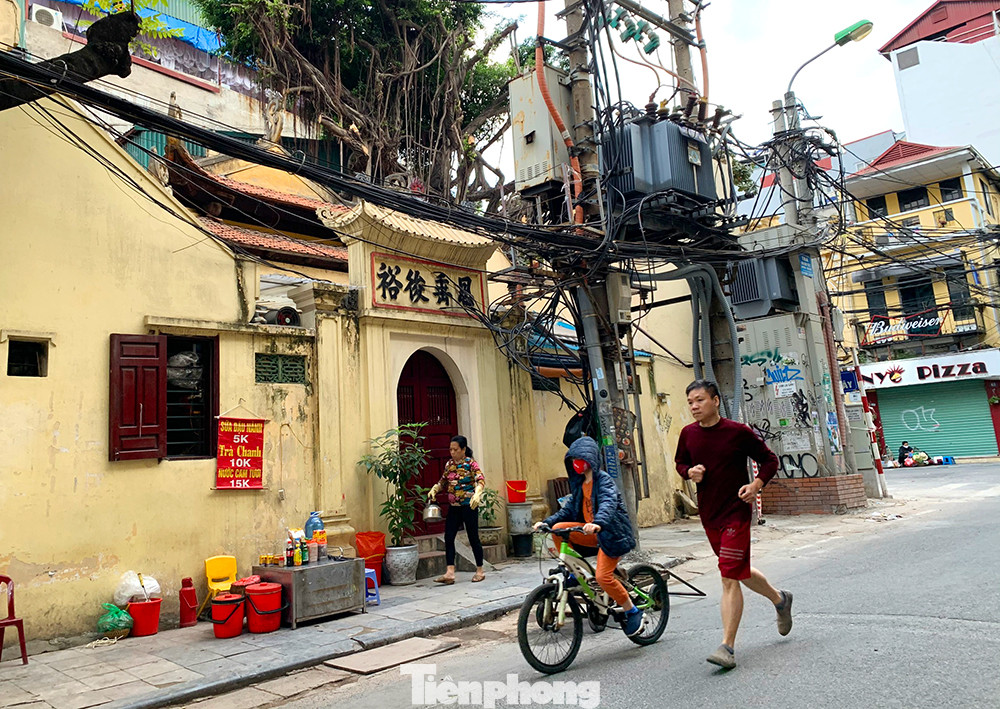 Hai bố con tập thể dục thể thao trên phố cổ Hà Nội vào 6 giờ sáng nay 29/11