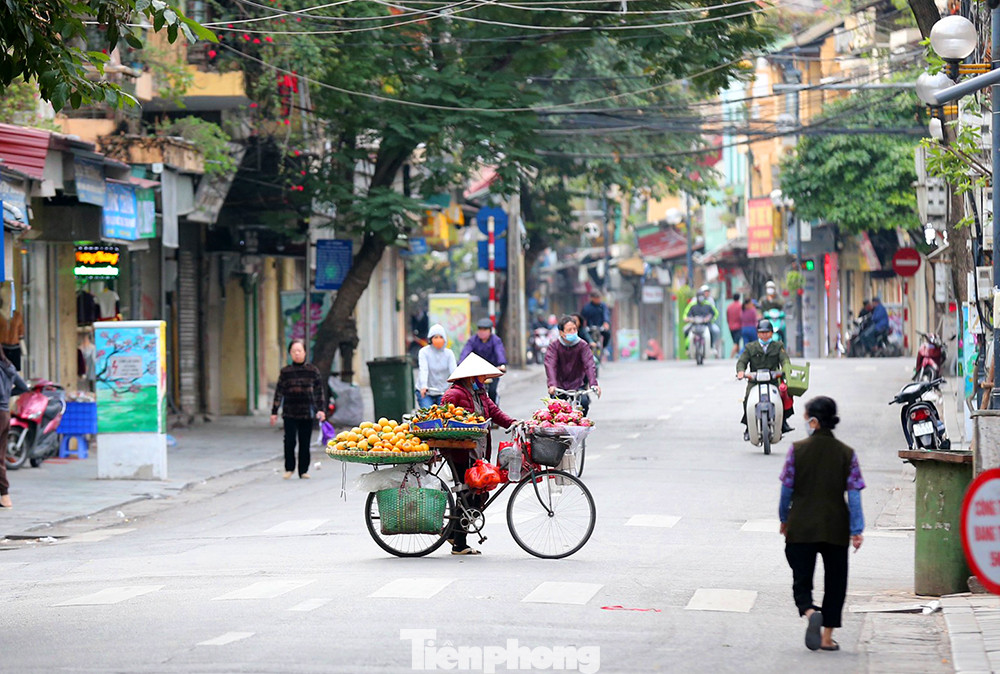 Khung cảnh lúc 6g30 sáng trên phố Hàng Đường ,quận Hoàn Kiếm , người dân đã cảm nhận được cái rét mùa đông đã đến