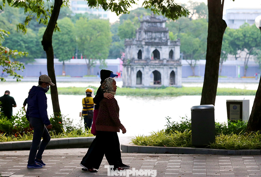 Người dân Thủ đô tập thể dục vào buổi sáng trên hồ Hoàn Kiếm cảm nhận cái rét đầu đông