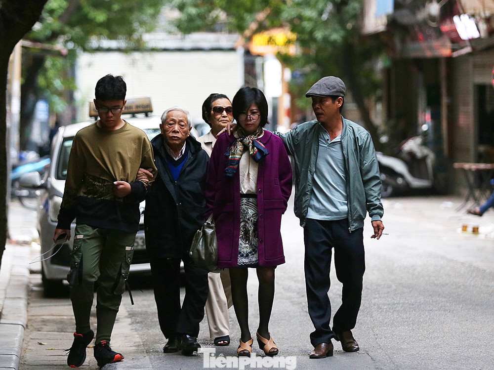 Một gia đình từ TP. Hồ Chí Minh đi thăm bà con ở Hà Nội dạo bộ và cảm nhận cái lạnh trên phố Hàng Giầy, quận Hoàn Kiếm, Hà Nội