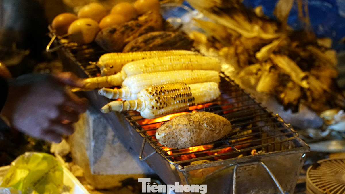 Một số bạn trẻ ngồi kề bên nhau, ăn món ăn dân dã như khoai nước, ngô nướng, uống cốc trà đá vỉa hè để xua đi cái lạnh "cắt da cắt thịt" giữa đêm đông.