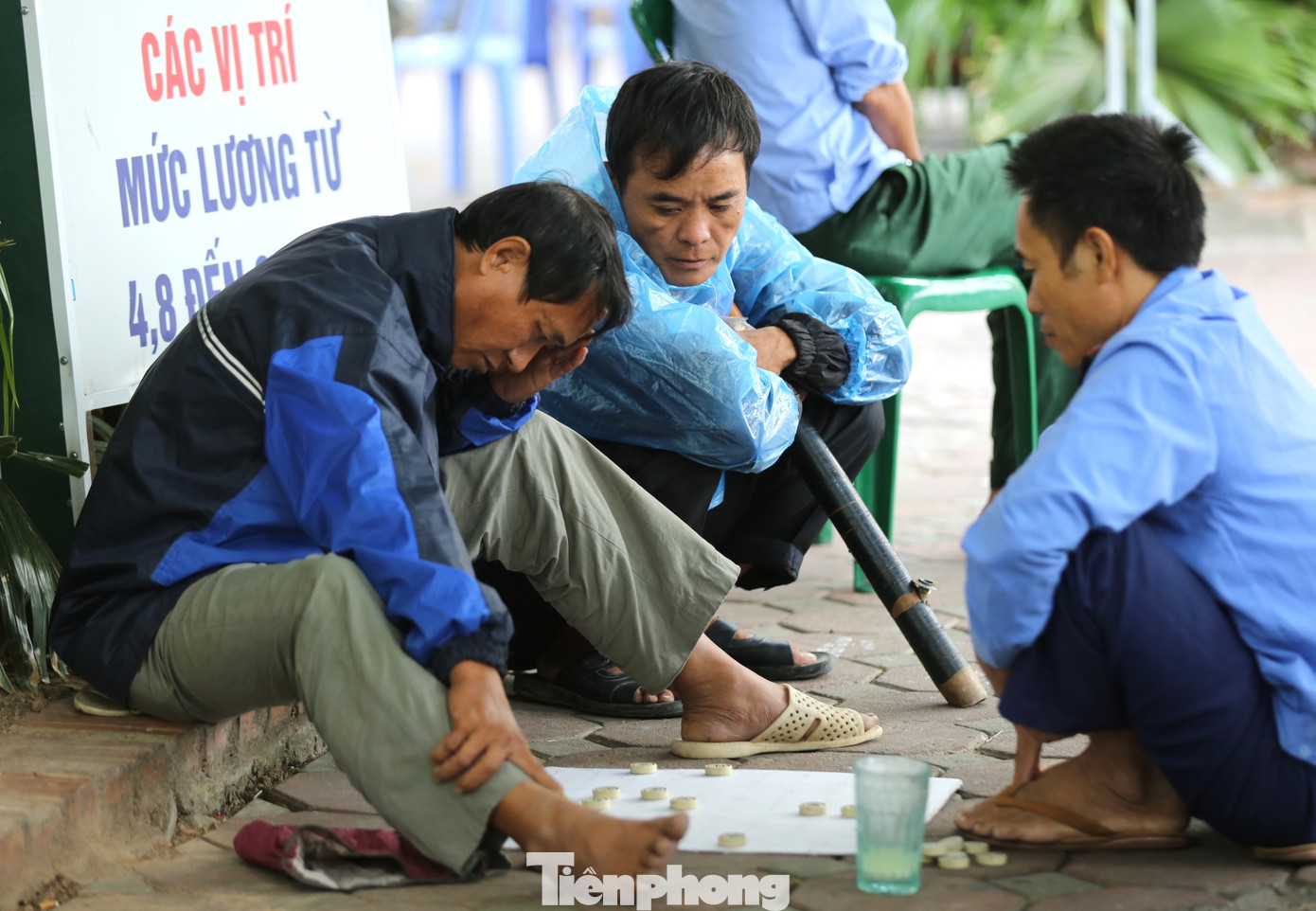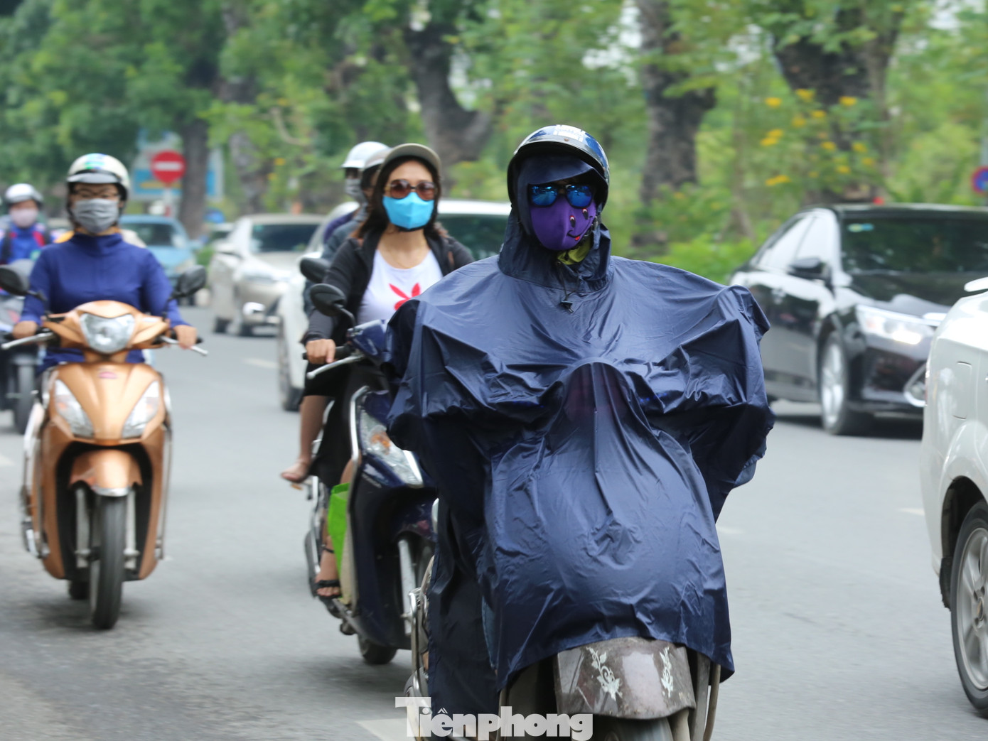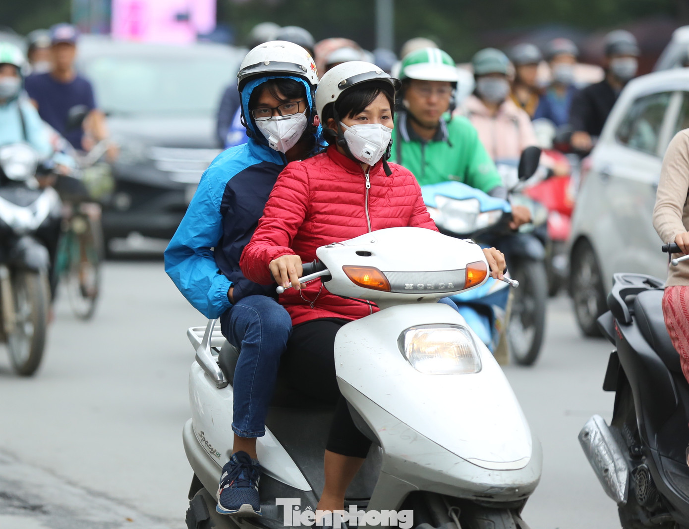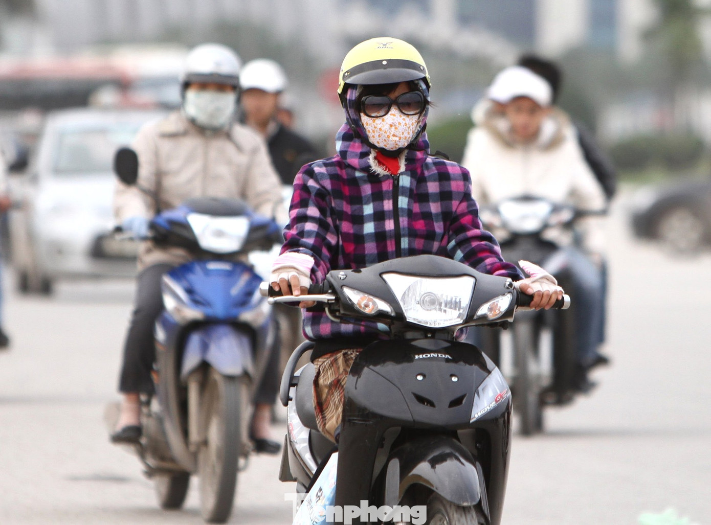 Nhiều người mặc thêm áo mưa trong buổi sớm gió lạnh