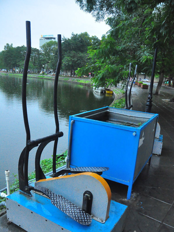 Nhưng lại không kết hợp được vừa tập thể dục có lợi cho bản thân lại đem lại ích lợi cho môi trường như chiếc máy tập thể dục xử lý ô nhiễm nước hồ.
