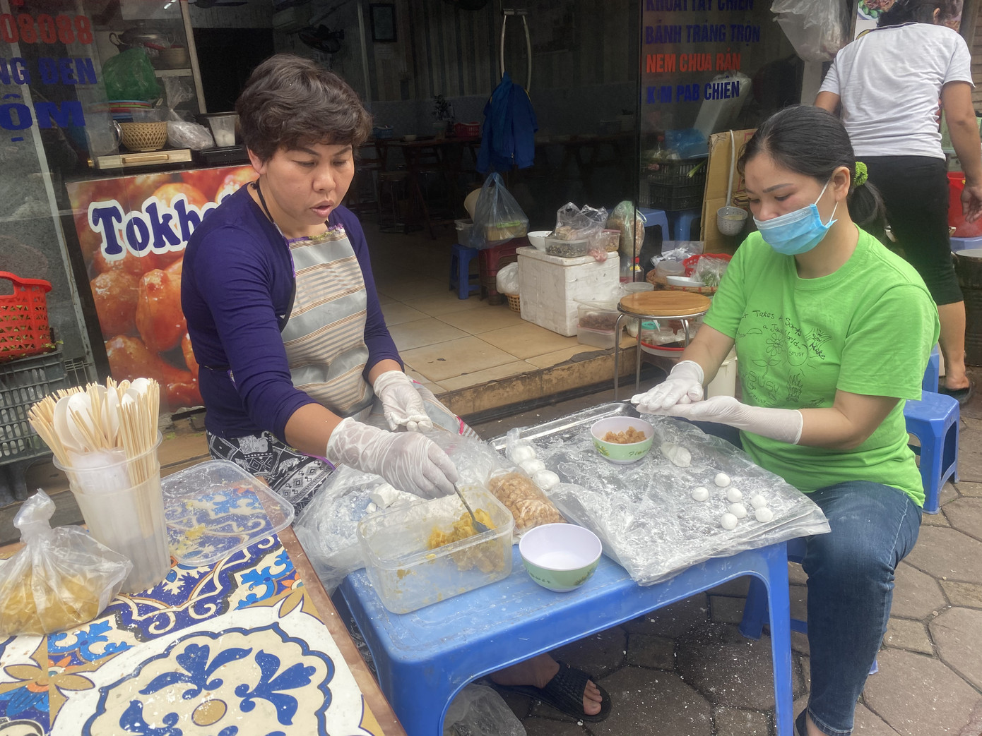 Chỉ tới 8 giờ 30, nhiều sạp bánh đã báo hết hàng. “Nhu cầu của khách vẫn còn thì mình vẫn bán. 3 người cùng làm, liên tục 2 nồi thì chỉ khoảng 15 phút nữa là có bánh”, chị Hạnh, tiểu thương chợ Khương Thương nói.