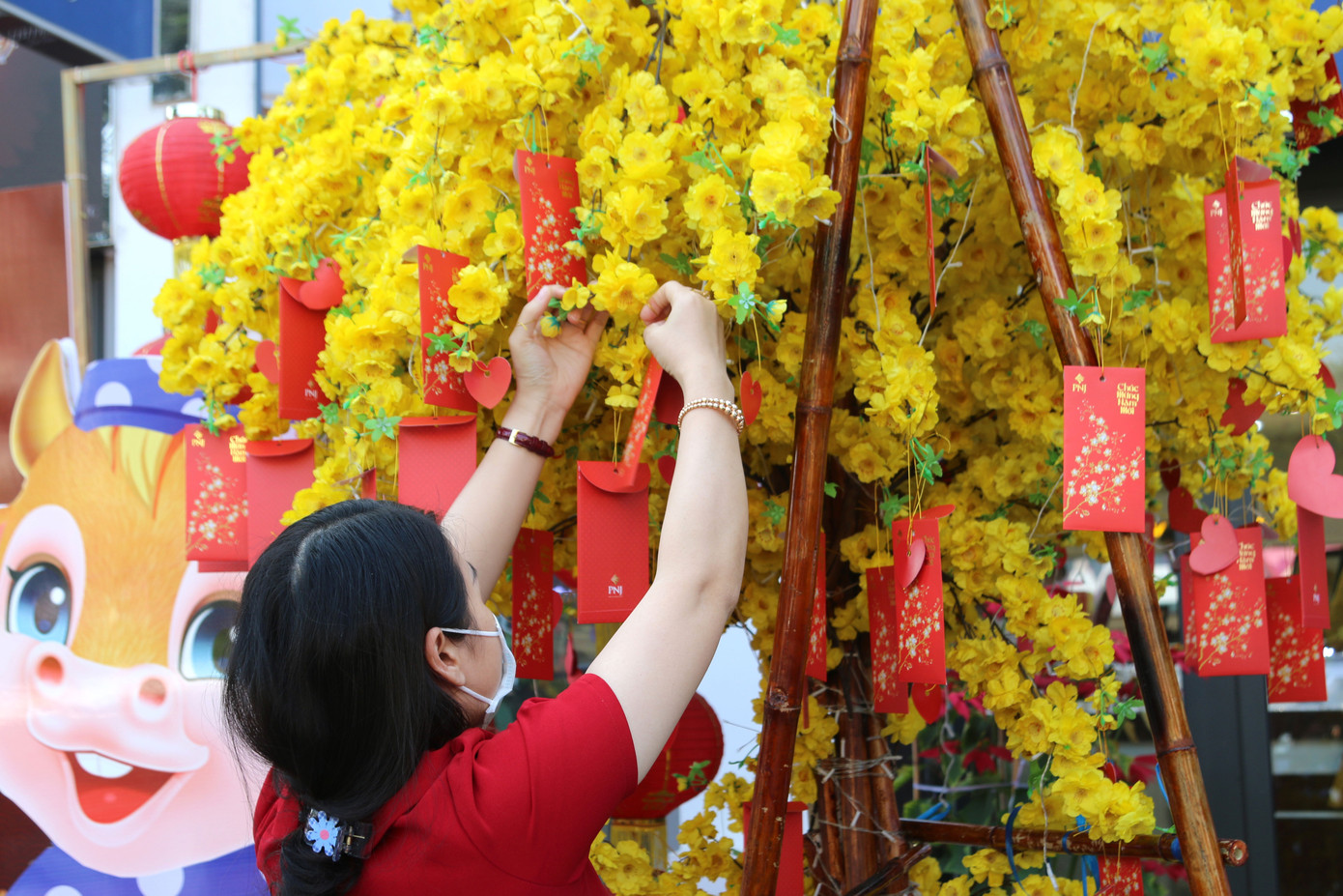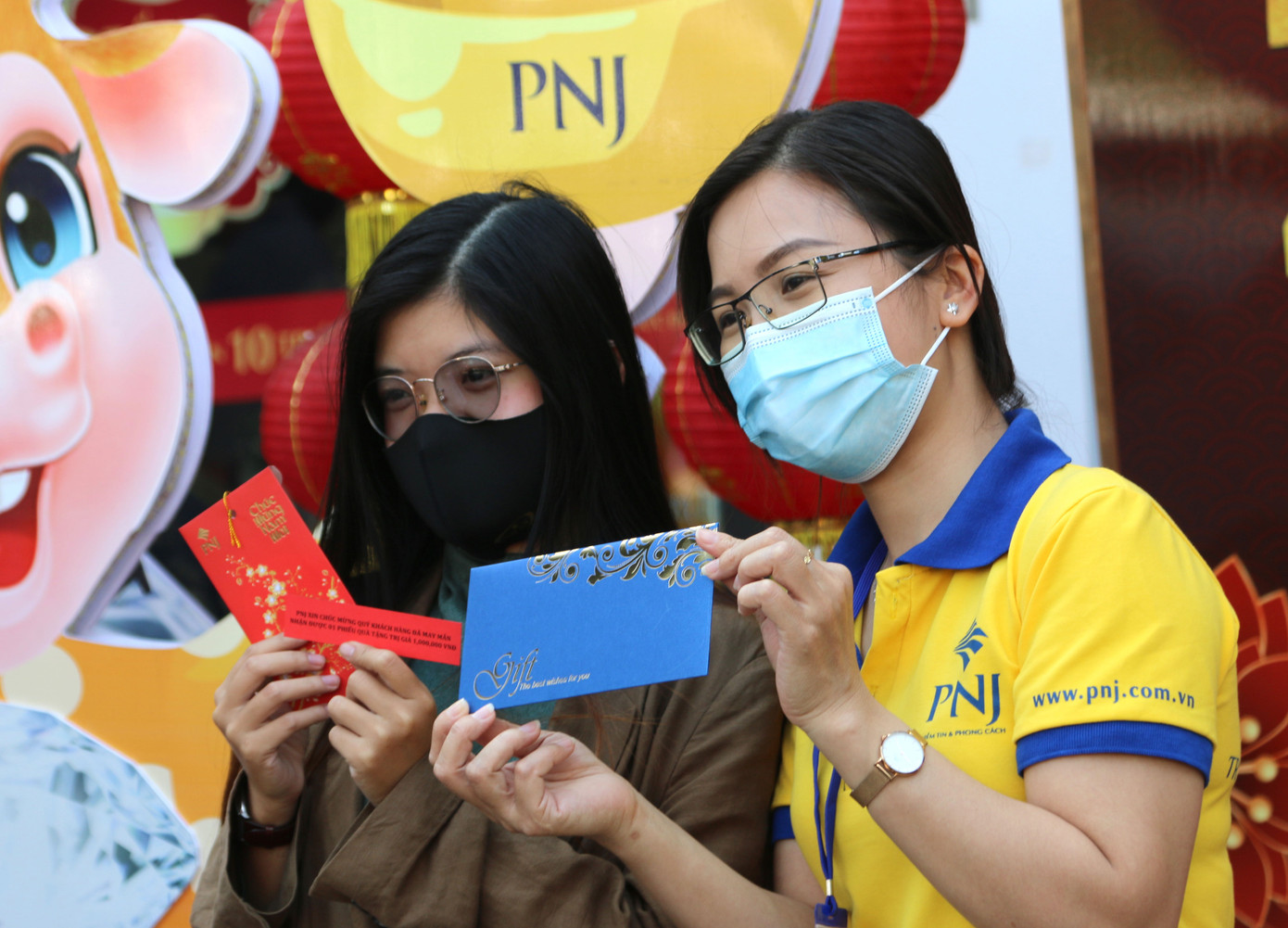 Khách hàng nhận bao lì xì may mắn đầu năm.