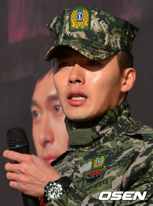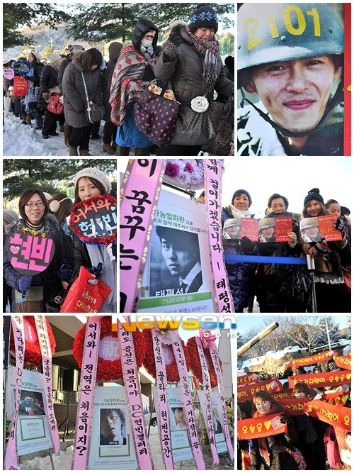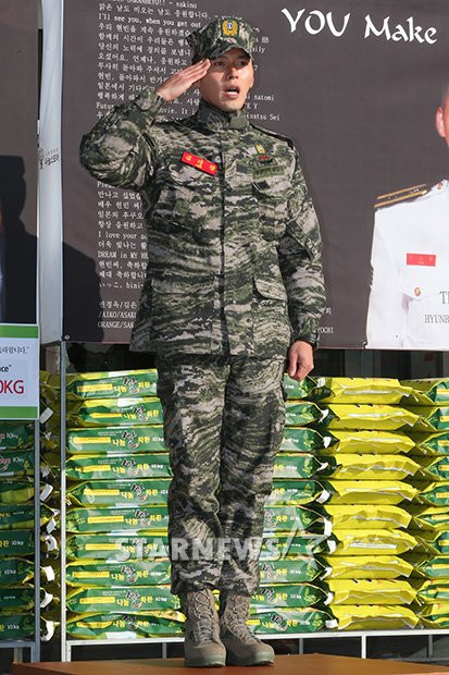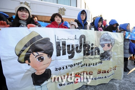 Mặc dù thời tiết rất lạnh và có tuyết dày nhưng rất nhiều người hâm mộ, từ già đến trẻ, đã mang băng rôn, tranh ảnh thần tượng đến Bộ tư lệnh Hải quân lục chiến tại thành phố Hwasung, Gyunggido để gặp gỡ Hyun Bin.