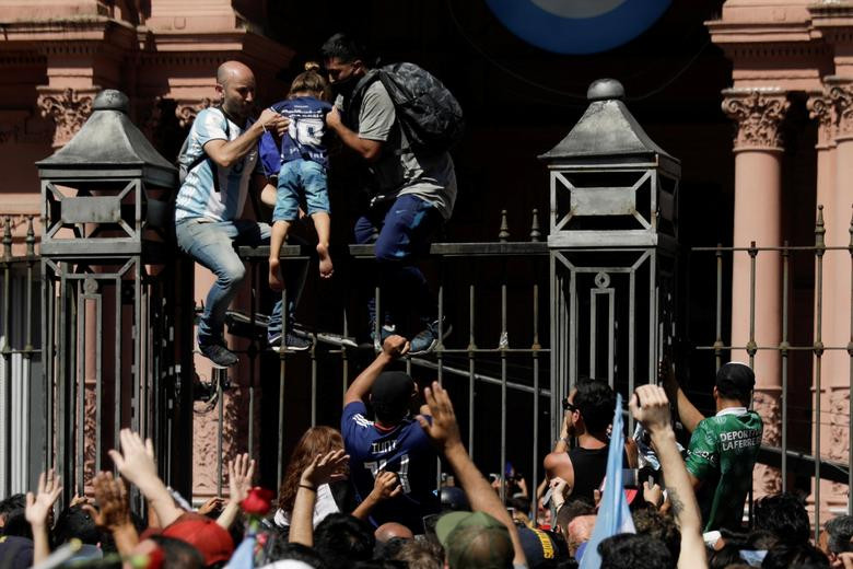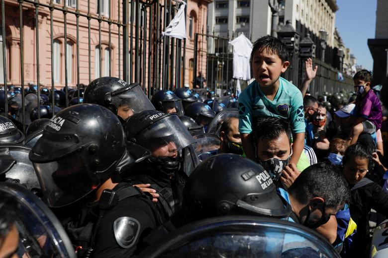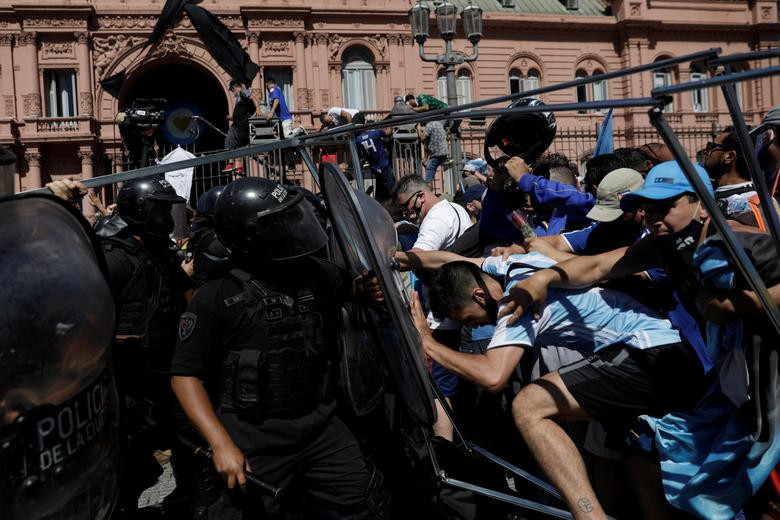 Cảnh sát thủ đô Bueno Aires đã được huy động để kiểm soát đám đông khi nhiều người tìm cách tiến vào Casa Rosada - Dinh Tổng thống, nơi đặt quan tài của ngôi sao Maradona.