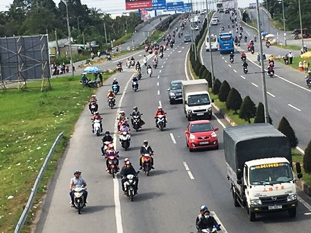 Hầu hết các phương tiện đều lỉnh kỉnh chở theo hành lý, quà quê ở phía sau xe. Nhiều người cho rằng đi sớm để có thời gian nghỉ ngơi và tránh tình trạng kẹt xe khi nhiều phương tiện sẽ đổ dồn về TP Hồ Chí Minh trong những ngày tới.