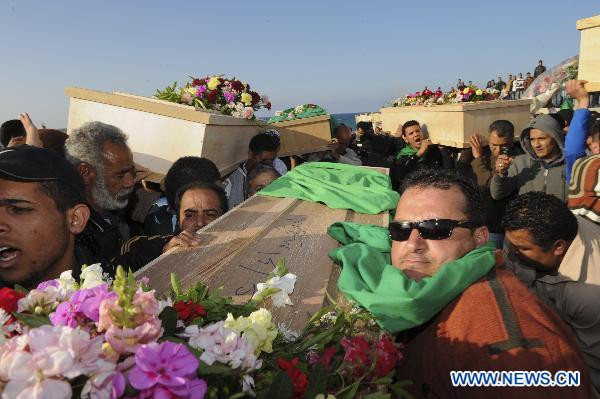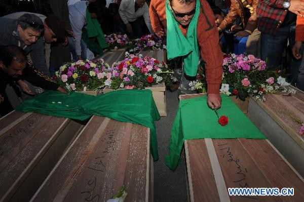 Một phát ngôn viên của chính phủ Libya Mussa Ibrahim cho biết, khoảng 100 dân thường của nước này đã bị thiệt mạng sau các đợt không kích trong những ngày qua của liên quân vào nước này. Hôm qua, rất đông người đã đến dự đám tang tập thể các nạn nhân tại nghĩa trang Al Hanshir ở thủ đô Tripoli.