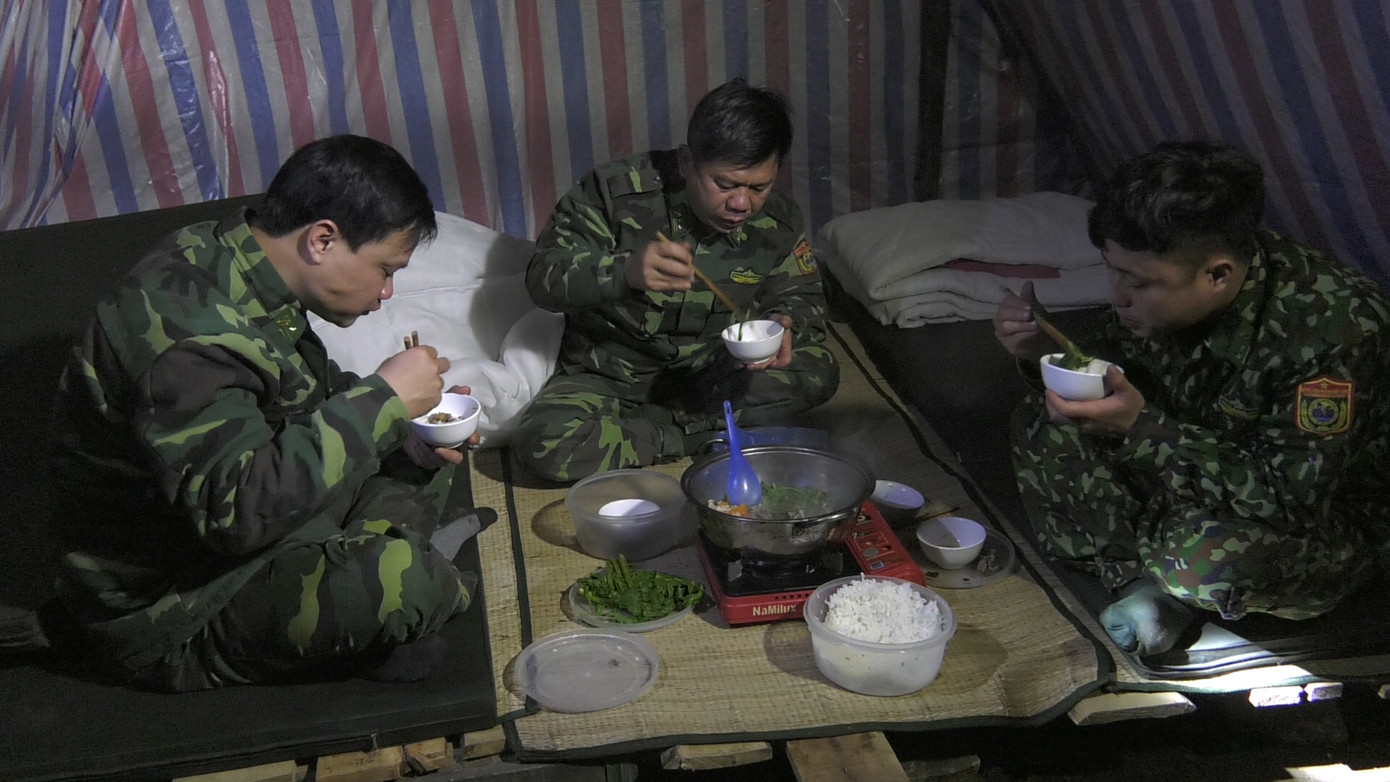 Bữa cơm đạm bạc của cán bộ Biên phòng đồn Pha Long tại chốt thuộc mốc 166.