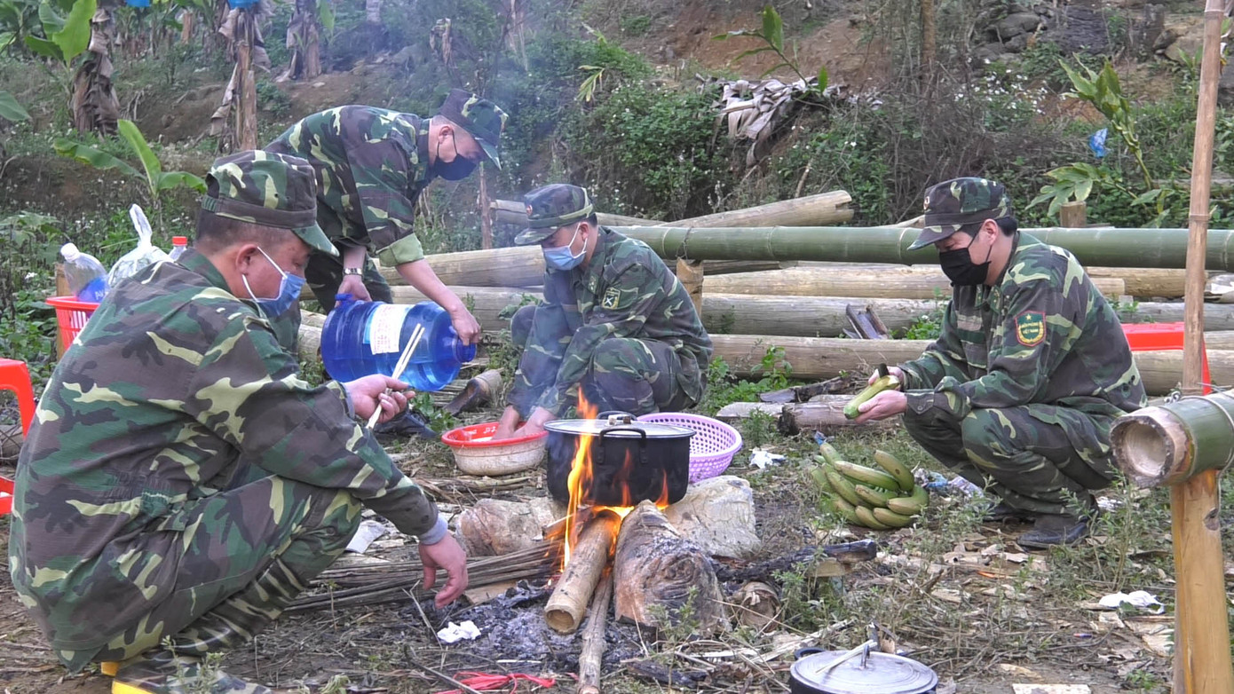 Tổ chốt chặn tại thôn Sim San, xã Y Tý chuẩn bị cho bữa tối.