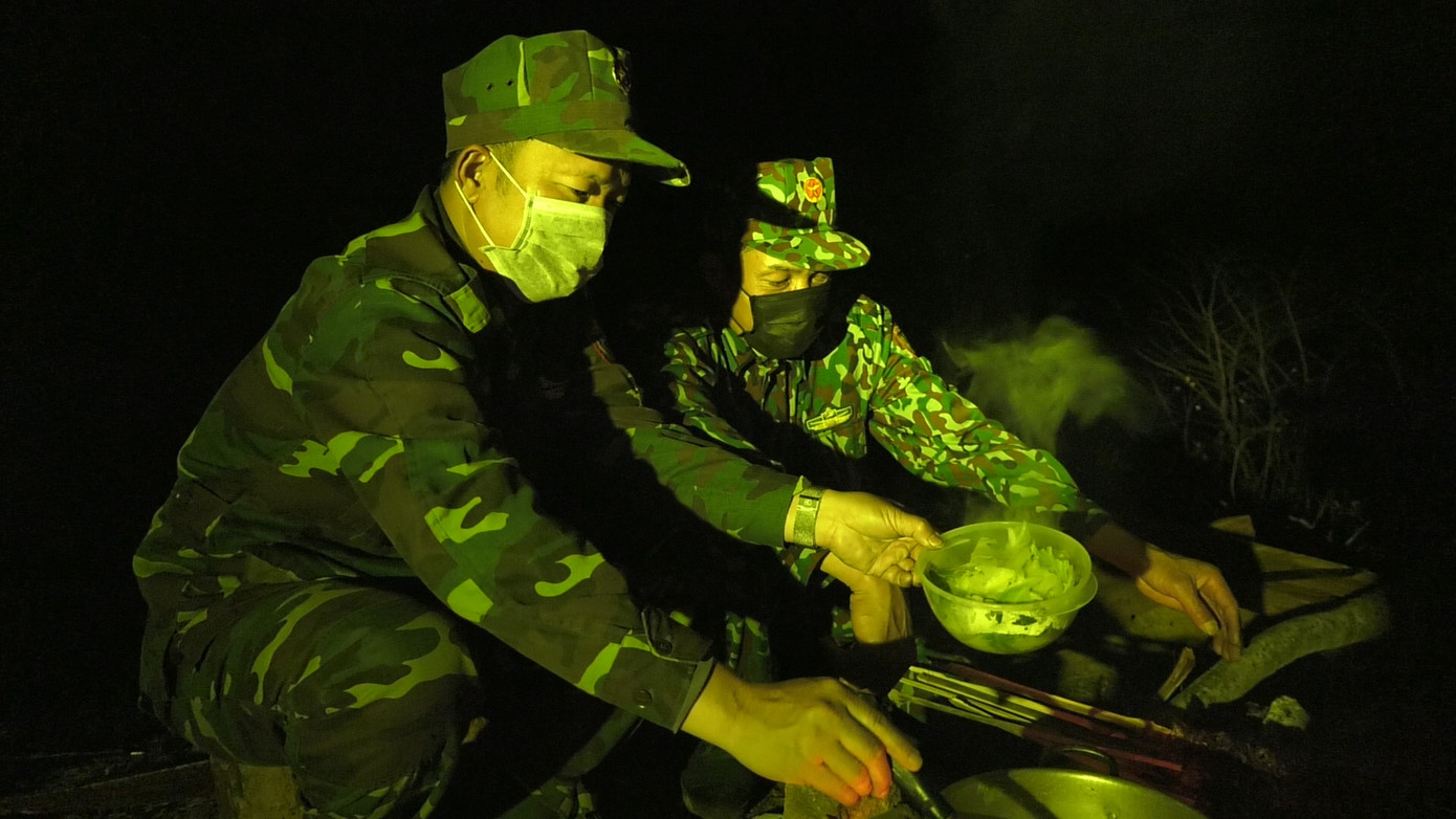 Sau bữa cơm tối, các chiến sỹ Biên phòng lại thay nhau gác chốt, tuần tra dọc biên giới.