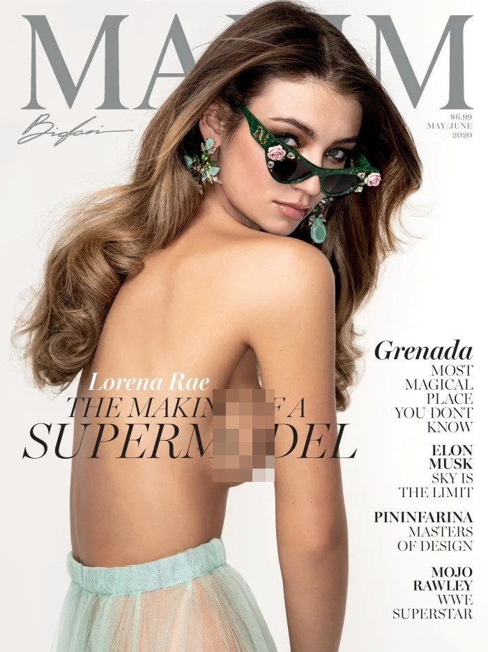 Lorena Rae táo bạo cởi áo bán nude trên bìa tạp chí Maxim số tháng 5/6.