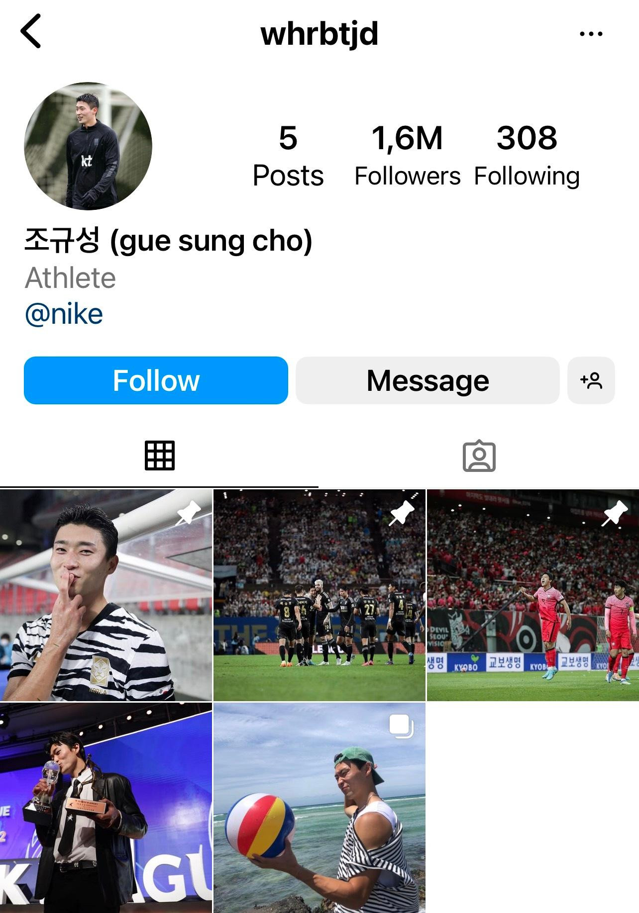 Đã đá hay, Cho Gue Sung còn sở hữu vẻ ngoài điển trai vô cùng nam tính, "lôi kéo" hội chị em phải ngồi thưởng thức bóng đá. Những hình ảnh và thông tin của chàng tiền đạo 24 tuổi phủ sóng mạng xã hội trong những ngày qua. Tài khoản Instagram của anh nhanh chóng đạt 1,6 triệu lượt theo dõi trong vài ngày, dù cho mới được mở hồi tháng Sáu và chỉ có vẻn vẹn 5 bài đăng.