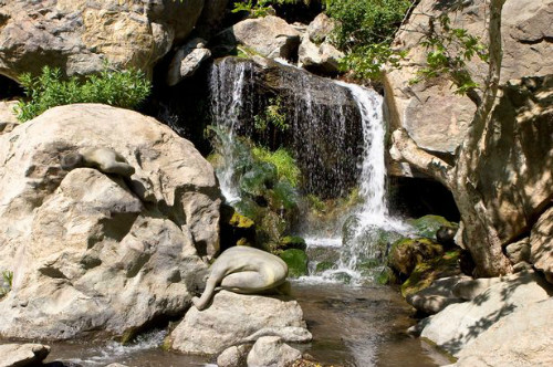 "Sau khi ngụy trang những người mẫu thành tác phẩm nghệ thuật, tôi bắt đầu tìm kiếm chủ đề và bối cảnh chụp ý nghĩa. Tôi là một kẻ tôn sùng thiên nhiên, yêu mọi thứ thuộc về tạo hóa", Filippo Ioco chia sẻ. Ảnh trên là một người mẫu được ngụy trang giống với tảng đá giữa dòng thác chảy ở Bouquet Canyon, bang California, Mỹ.