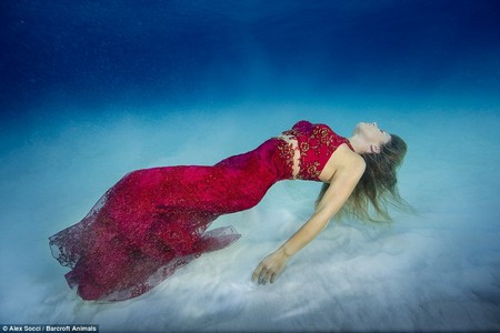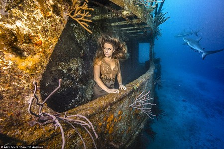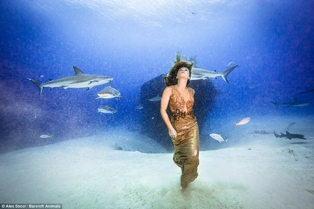 Bộ ảnh này được chụp ngoài khơi thành phố Nassau (Bahamas), với sự tham gia của người mẫu và ngôi sao truyền hình người Brazil, Karina Oliani, 33 tuổi. Oliani xuất hiện trong bộ ảnh với những trang phục lộng lẫy, không sử dụng bất kỳ biện pháp bảo hộ hay dụng cụ hỗ trợ hô hấp nào, trong khi cá mập bơi lội xung quanh cô.