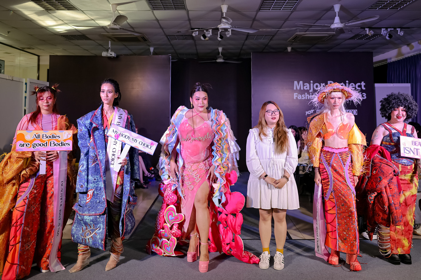 Các thiết kế mang đậm dấu ấn cá nhân, thể hiện óc sáng tạo, khả năng tư duy hiện đại bắt kịp xu hướng. Hệ thống màu sắc tươi sáng, sặc sỡ tạo ra cảm giác tươi mới, năng lượng tích cực cho những người mẫu ngoại cỡ.