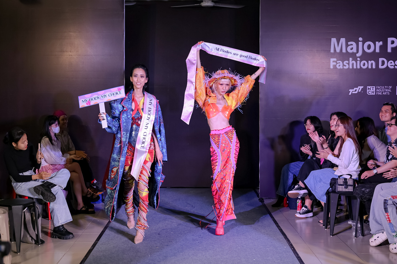 Các thông điệp tôn vinh vẻ đẹp đa dạng của các số đo cơ thể như Love Yourself, My body my choice, Beautiful isn't size, All bodies are good bodies… được Phước Linh khéo léo lồng ghép tạo nên điểm nhấn cho phần trình diễn.